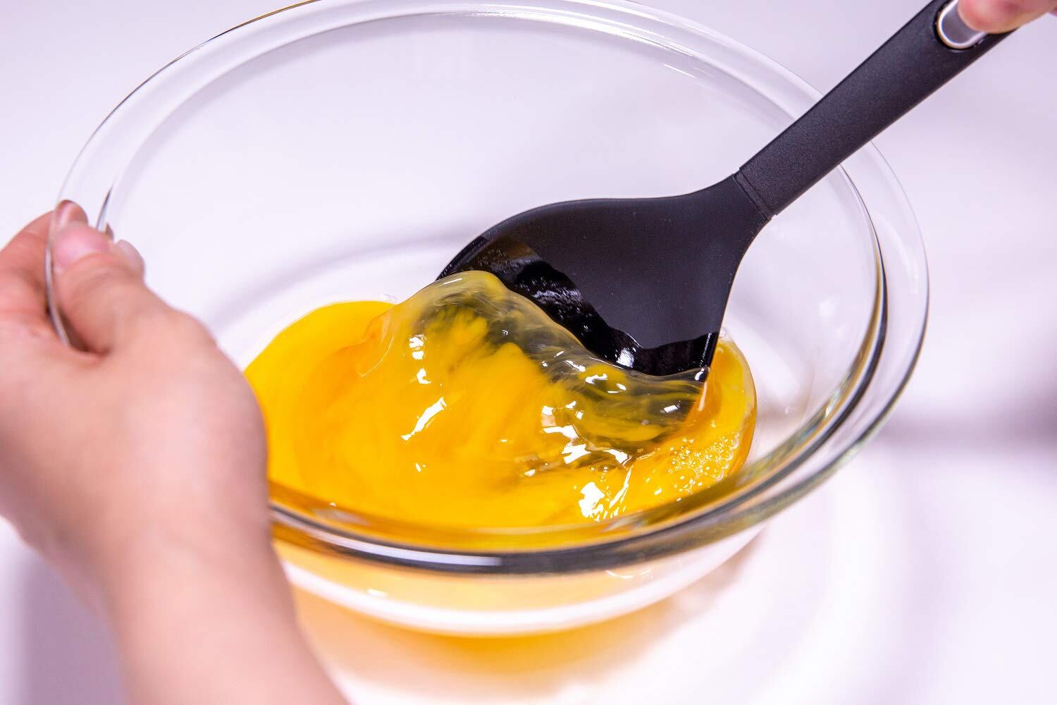 ●先端がほどよい硬さのシリコンだから、フライパンやボウルにピタっと密着して汁気や具材をきれいに集められる