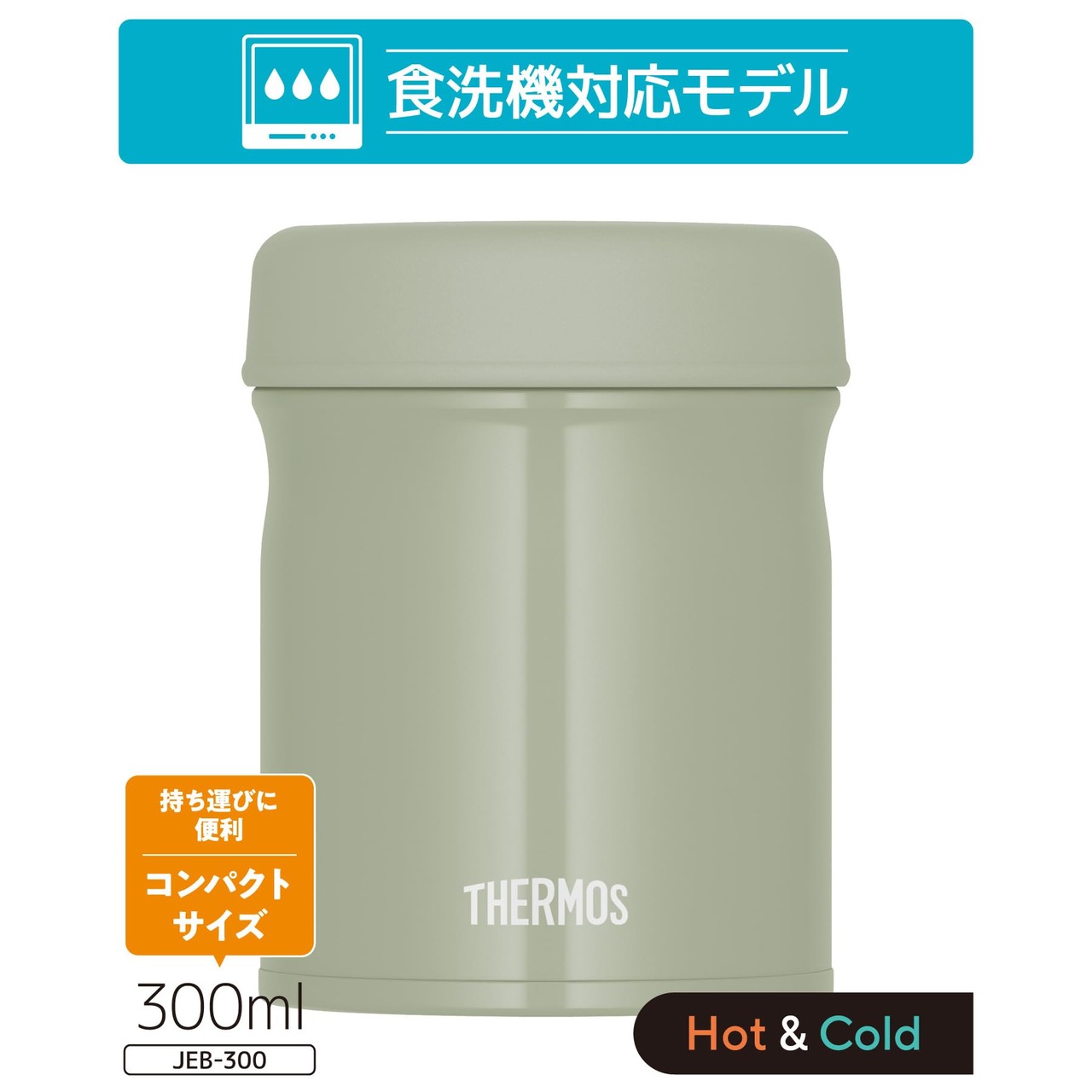 【食洗機対応モデル】 サーモス 真空断熱スープジャー 300ml カーキ 全パーツ食洗機OK 保温保冷 お手入れ簡単 口当たりがやさしい丸口設計 JEB-300 KKI