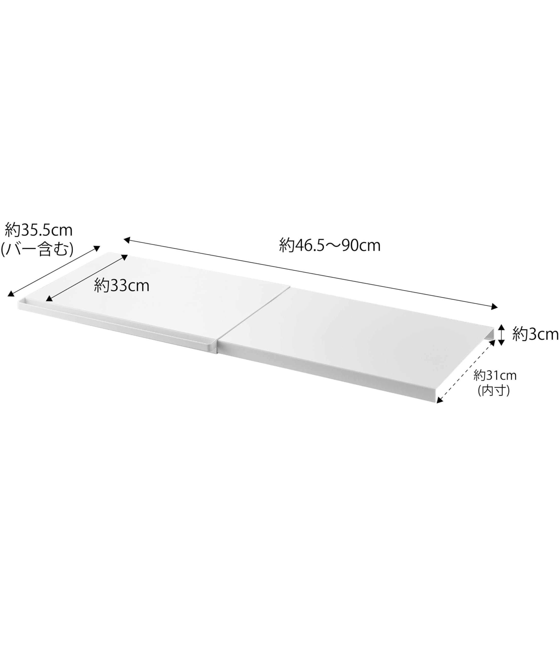 山崎実業(Yamazaki) 伸縮 つっぱり棒用棚板 L ホワイト 約W46.5~90XD35.5XH3cm タワー 簡易棚 つっぱり棒に乗せるだけ 5322