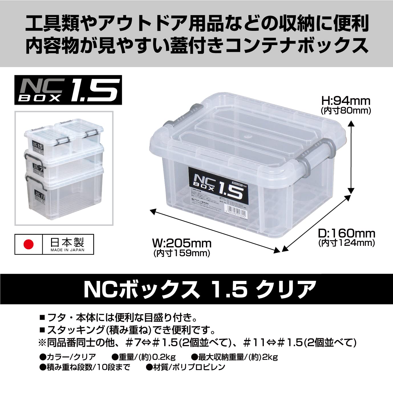 JEJアステージ(JEJ Astage) 収納ボックス 日本製 NCボックス #1.5 積み重ね おもちゃ箱 防災 [幅20.5×奥行16×高さ9.4cm]