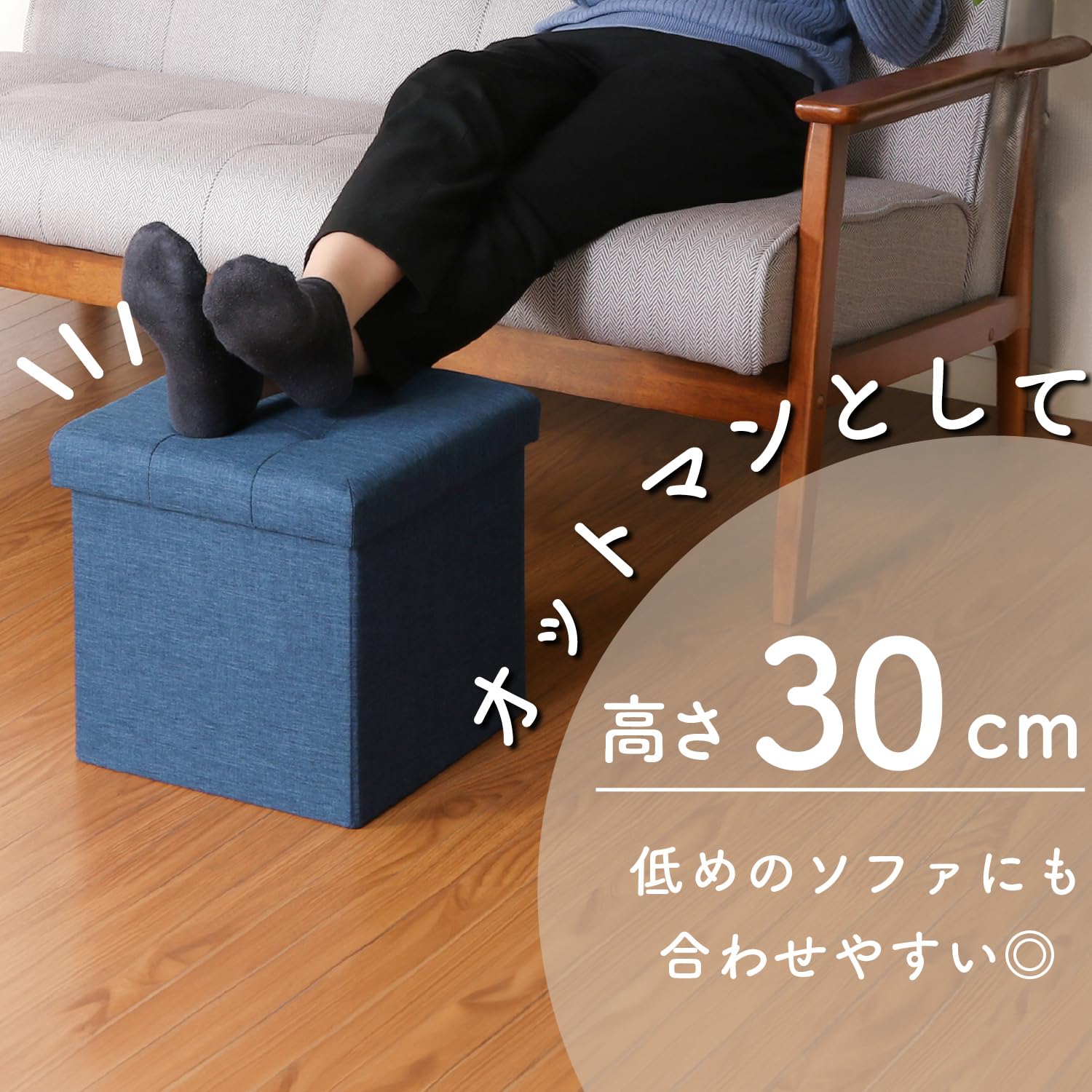 不二貿易 収納スツール 収納ボックス 幅31×奥行31×高さ30.5cm ネイビー オットマン 耐荷重80kg 折りたたみ ボックススツール ハント 85993