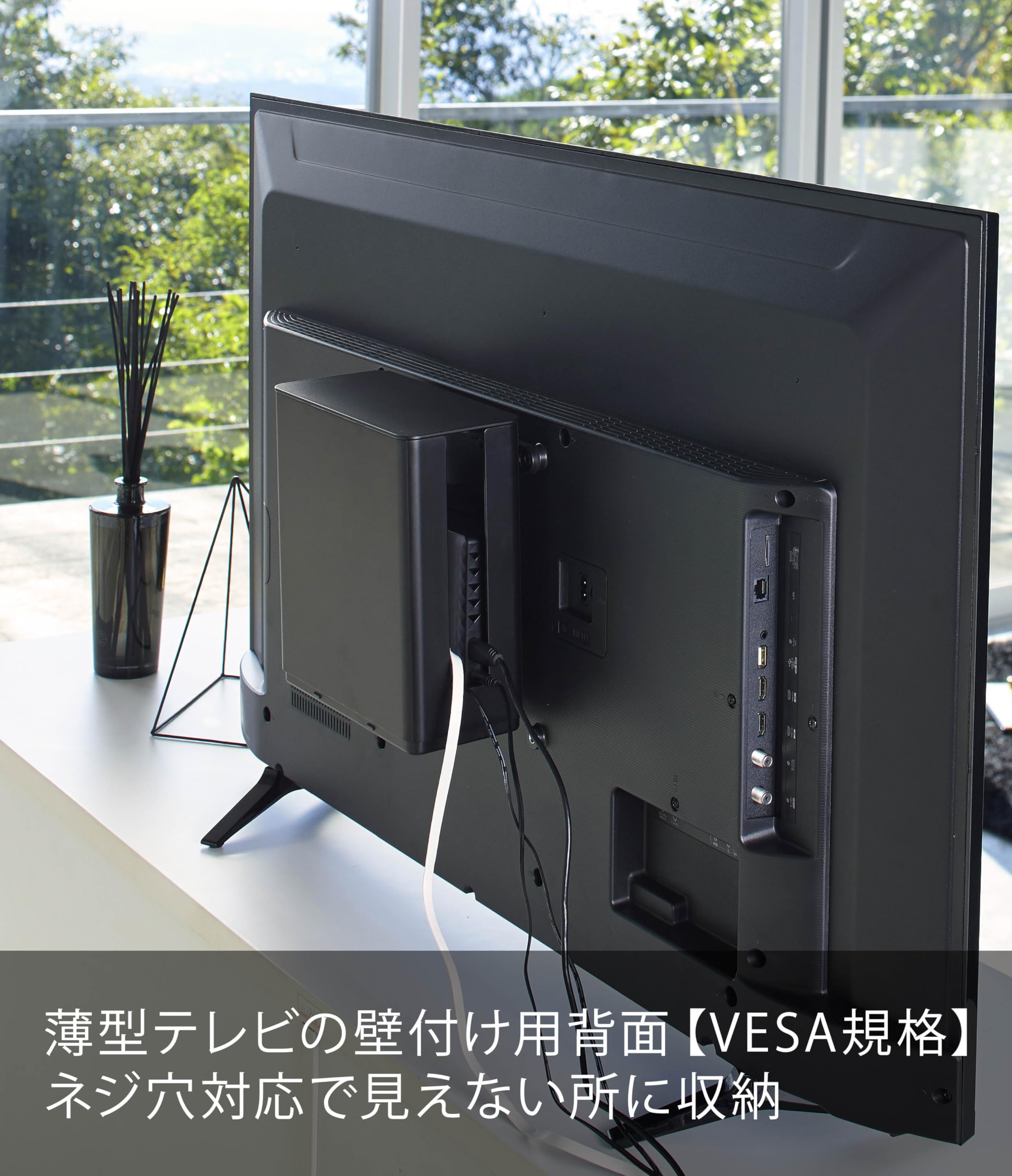 VESA規格にも対応しているので、テレビの裏に取り付けることも可能です。