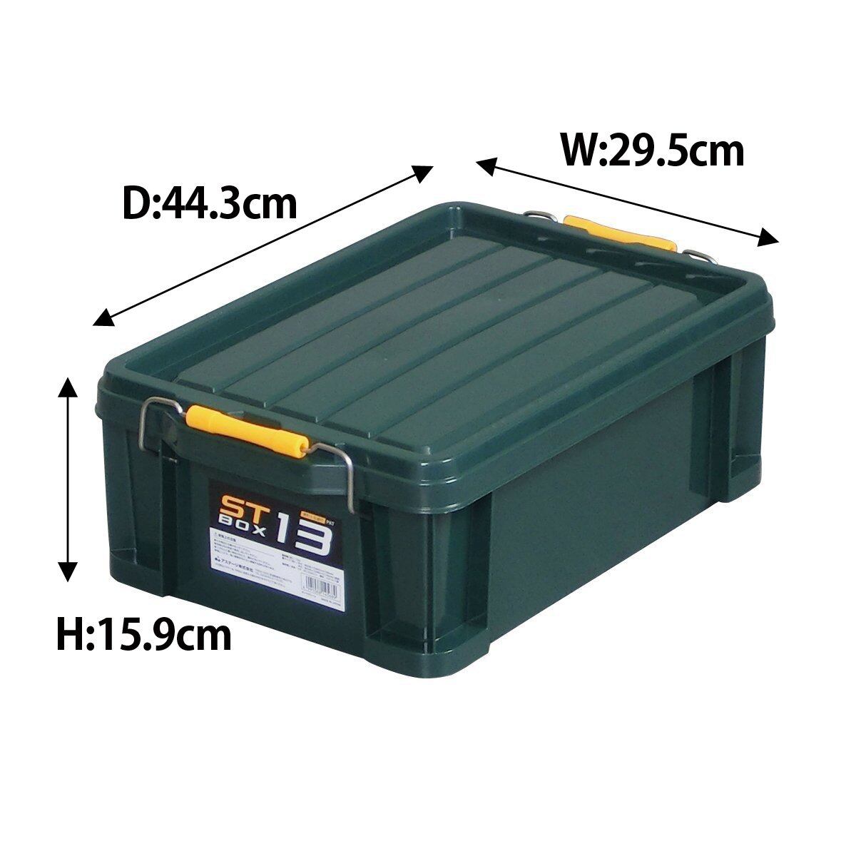 JEJアステージ 収納ボックス 日本製 STボックス #13 積み重ね ダークグリーン 防災 [幅29.5×奥行44×高さ16cm]
