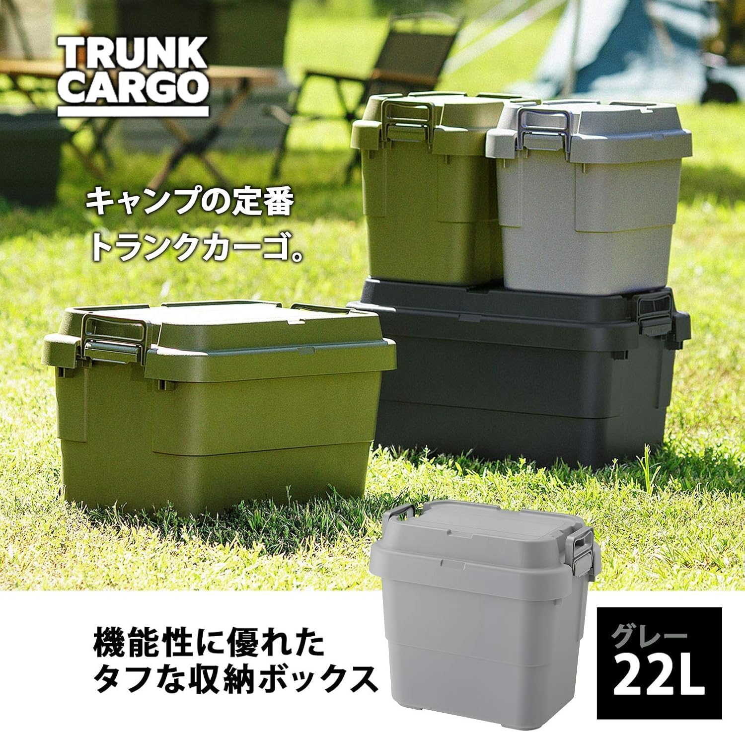 【在庫セール】リス(RISU) 収納ボックス トランクカーゴ 22L グレー 日本製 TC-20S コンテナ ボックス スタッキング 屋外収納 キャンプ 防水