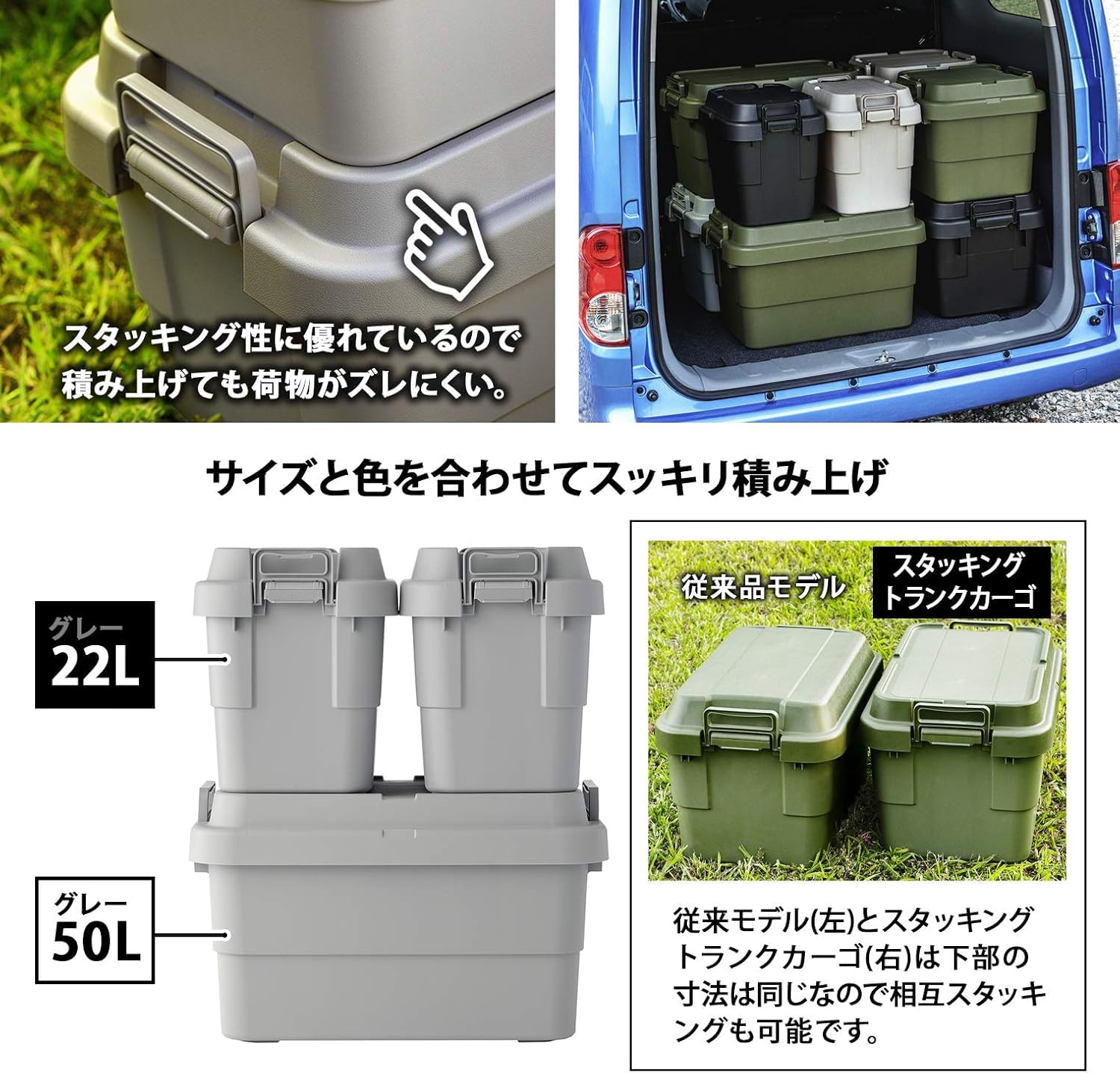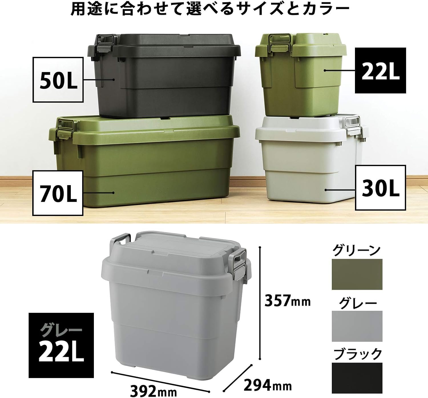 リス(RISU) 収納ボックス トランクカーゴ 22L グレー 日本製 TC-20S コンテナ ボックス スタッキング 屋外収納 キャンプ 防水