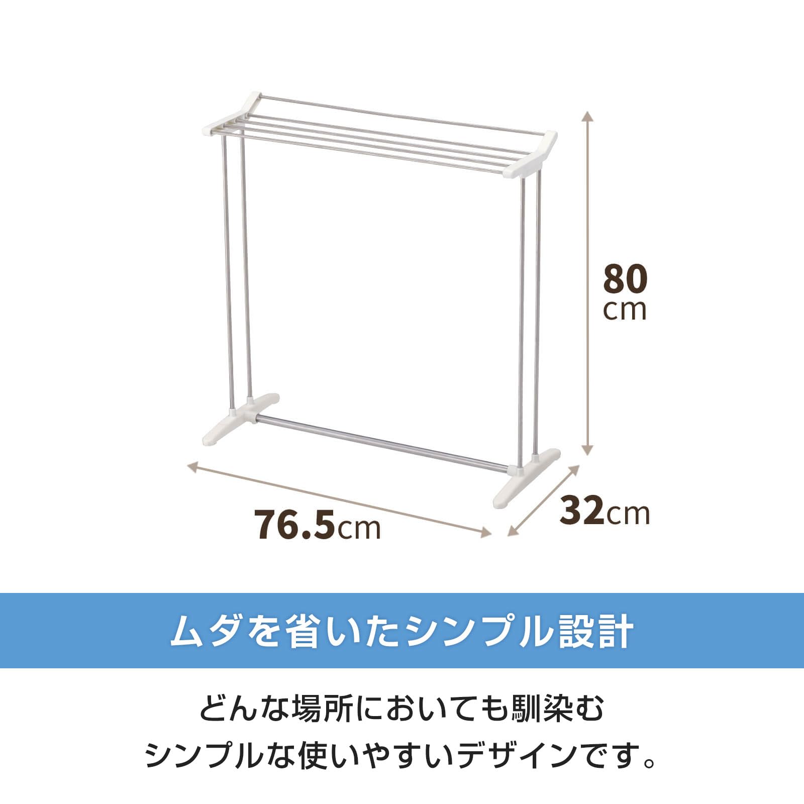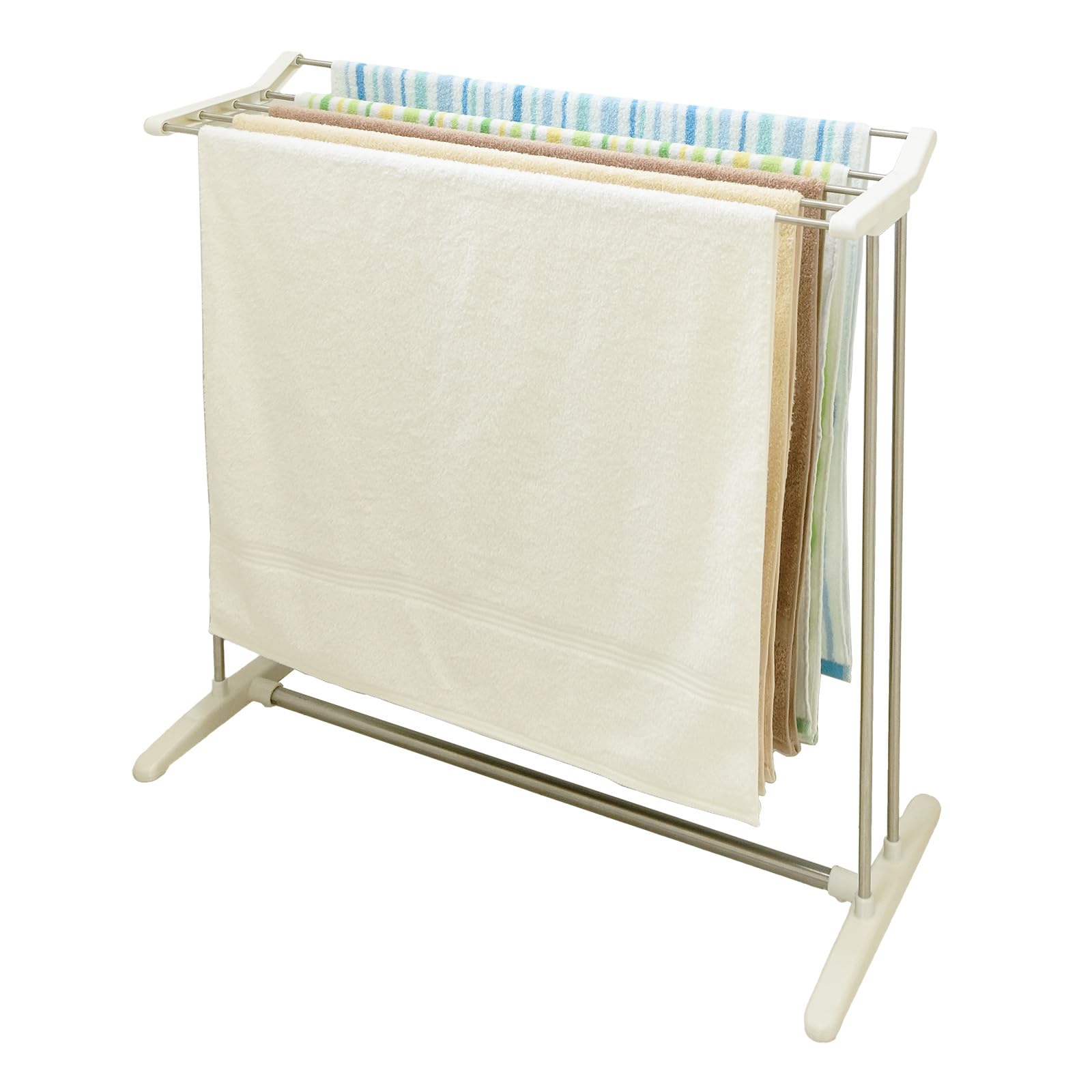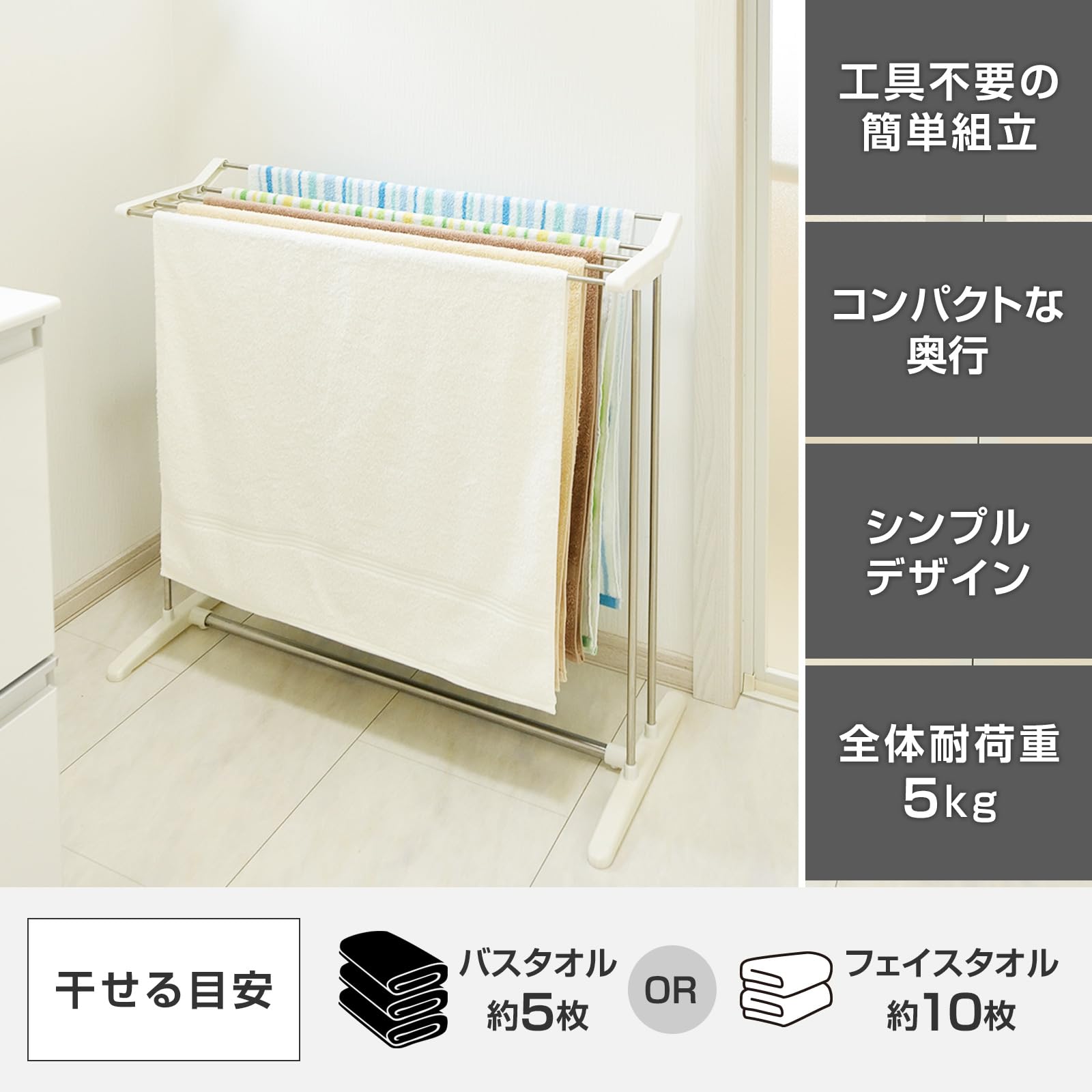 天馬 限られたスペースでもバスタオルが5枚干せるシンプルなバスタオルハンガー 洗濯物干し 組立式 室内用 バスタオルスタンド ホワイト 幅76.5×奥行32×高さ80cm PS-22