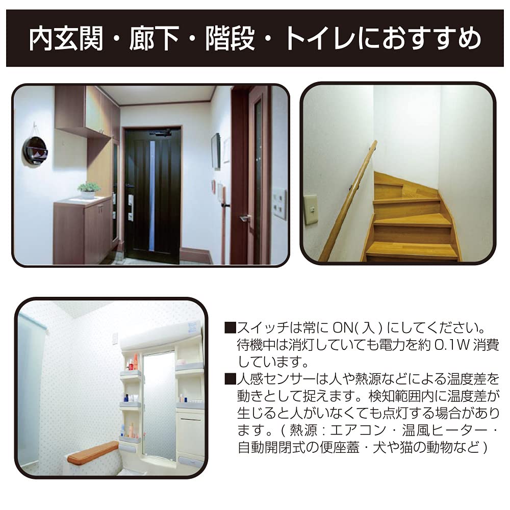 ※センサーに向かって横切る場合は敏感に反応します。センサーの正面に向かう場合は反応が鈍いことがあります。※周囲の温度が高くなる夏場など、反応が鈍くなることがあります。