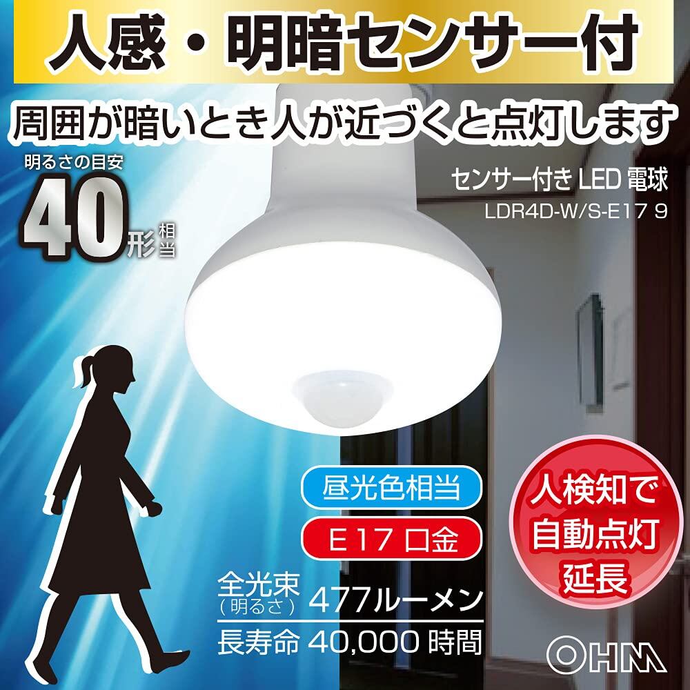 【人気商品】オーム(OHM) 電機 LED電球 レフランプ形 E17 40形相当 人感・明暗センサー付 昼光色 LDR4D-W/S-E17 9 06-3414