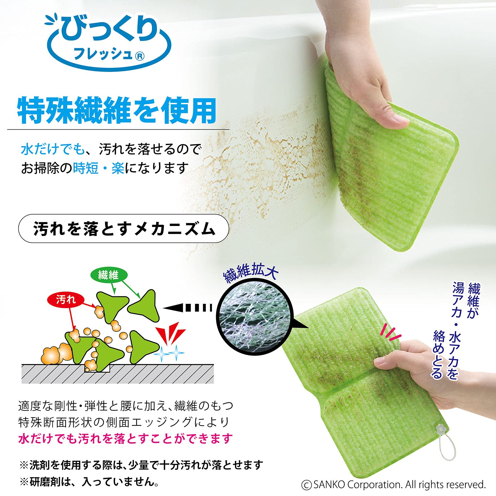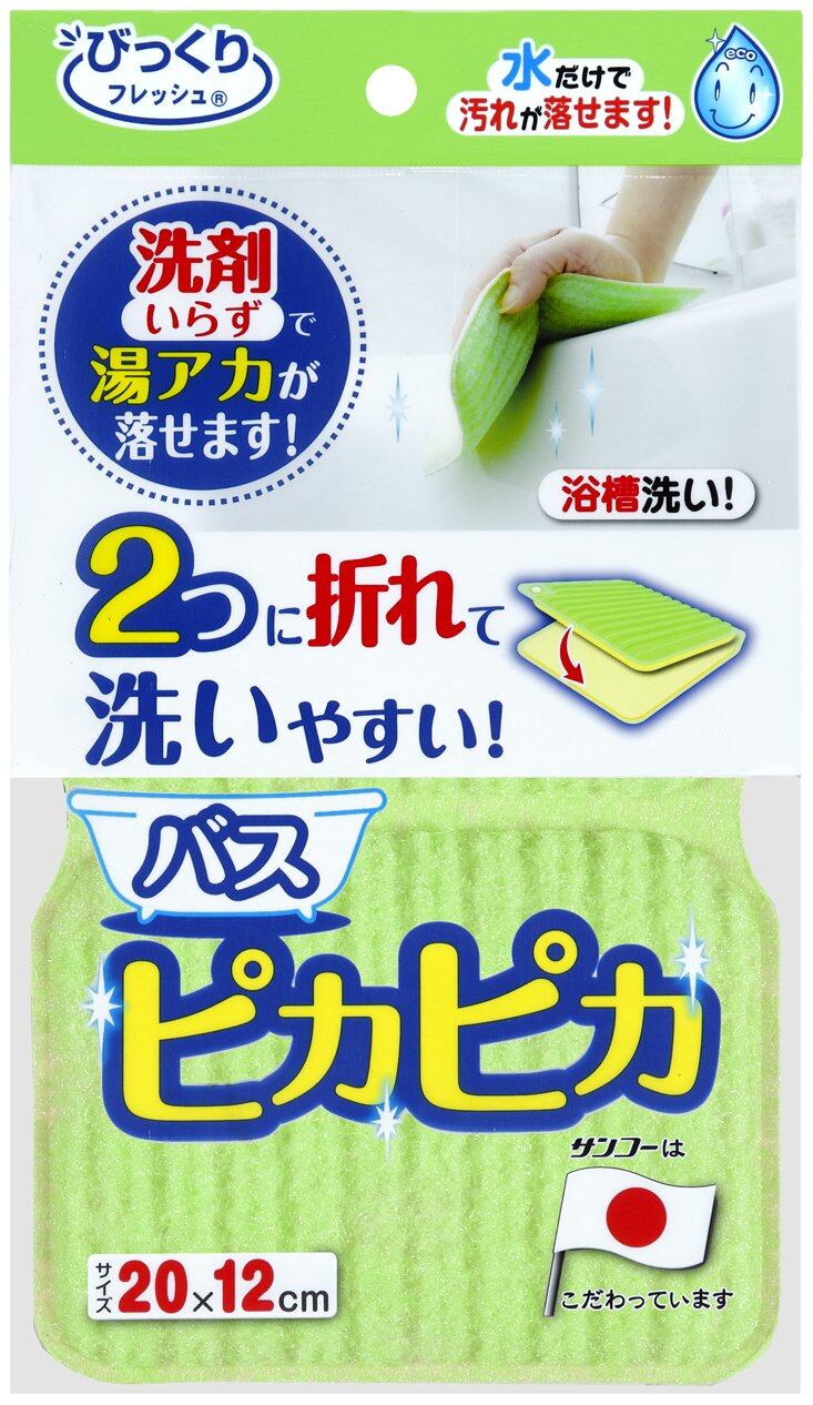 【新装セール】Sankoサンコー お風呂 スポンジ 浴槽 掃除 お得用 水だけでも汚れが落とせる特殊繊維 びっくりフレッシュ バスピカピカ グリーン 20x12cm 日本製 BF-52 | ももくま屋さん
