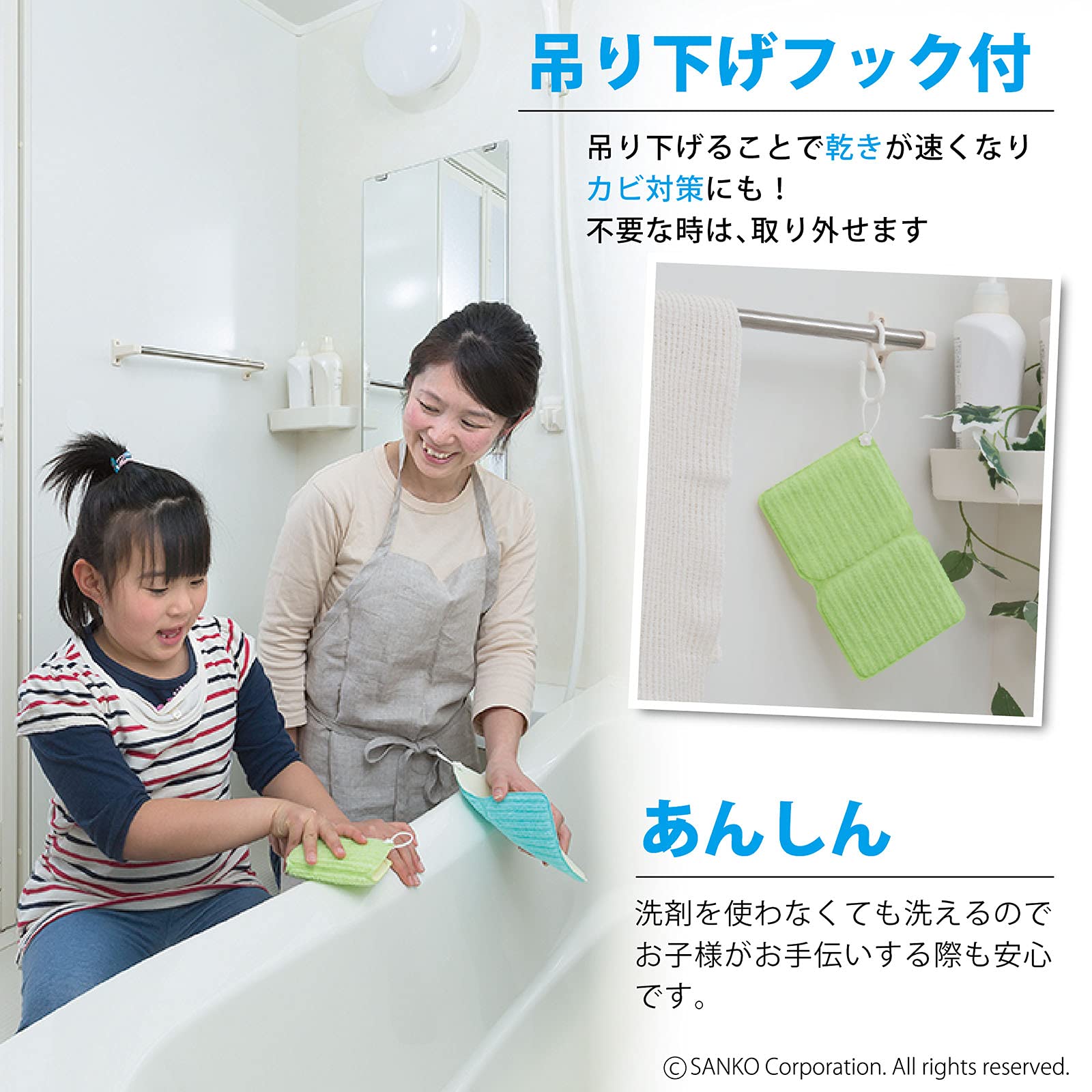 【洗剤不要】洗剤を使用せず汚れが落とせるので、手荒れ、節水対策、お子様のお手伝い、ながら掃除(お風呂に入りながら)ができます。使用する場合でも少量で汚れが落とせます。