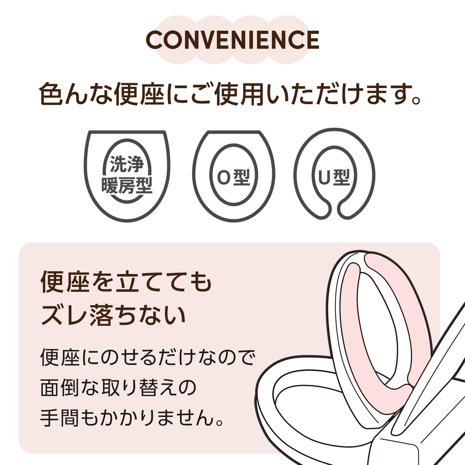便座にピタッと貼る(吸着する)だけで面倒な取り替えの手間がかかりません。