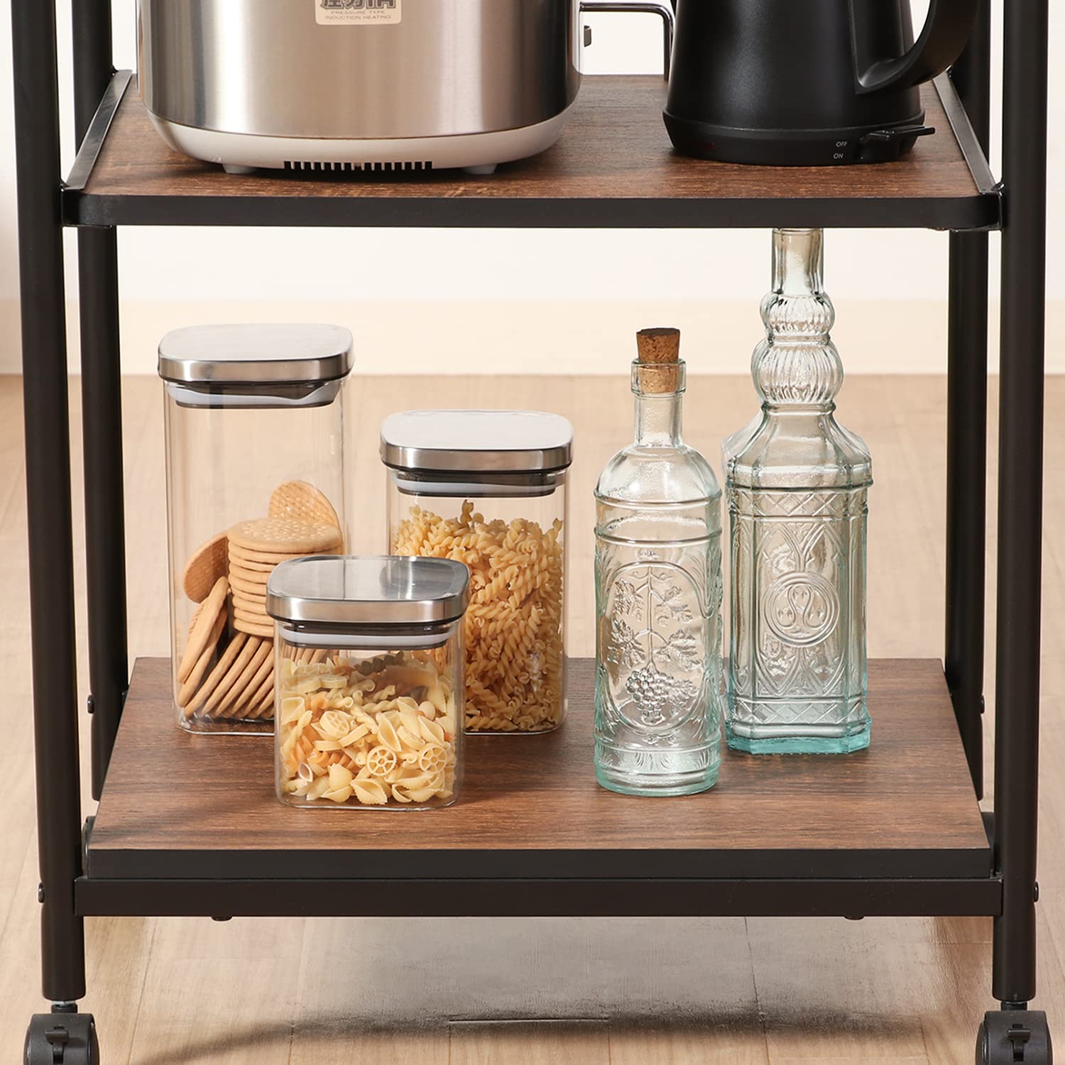 レンジや炊飯器の収納に便利なキッチンワゴンです。