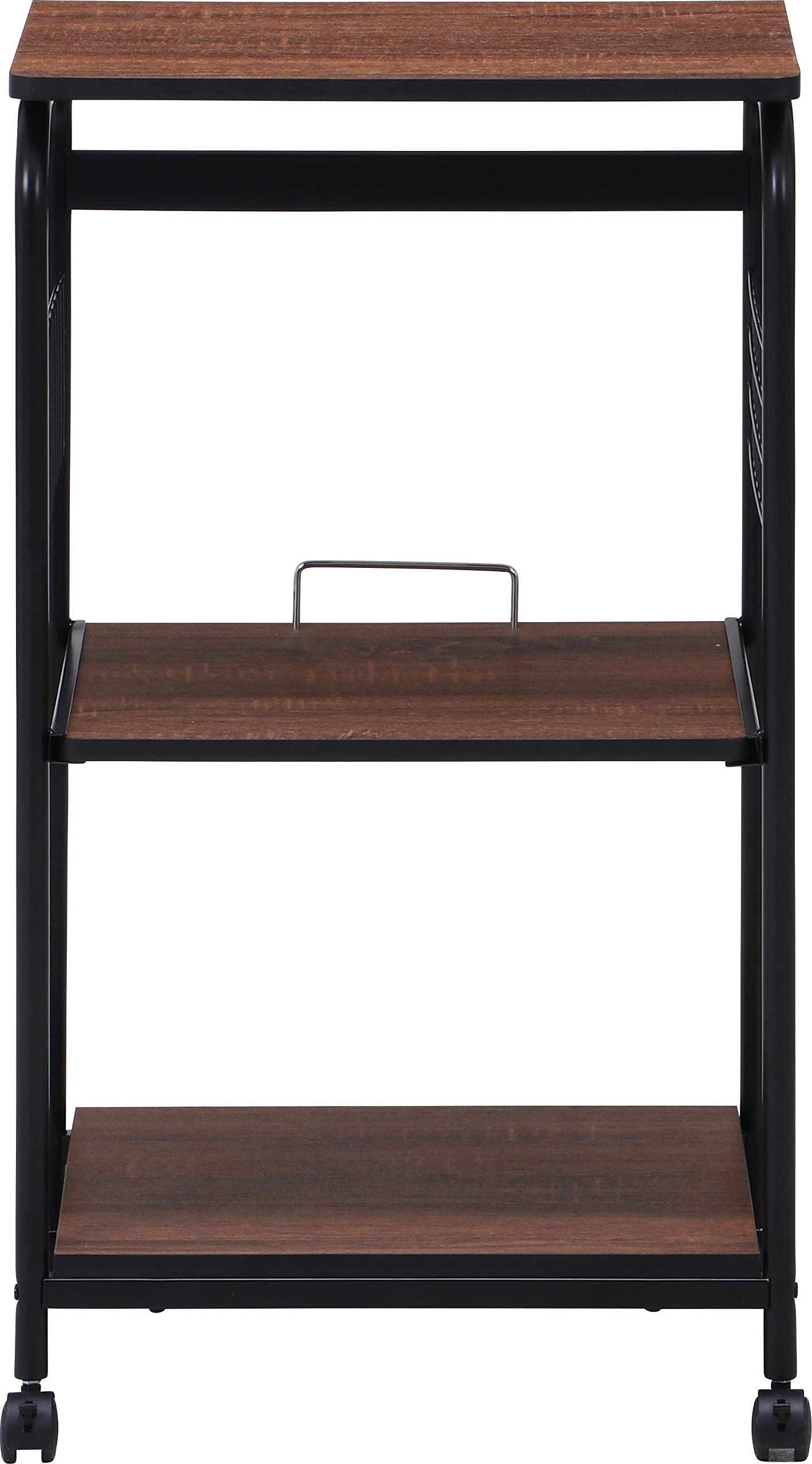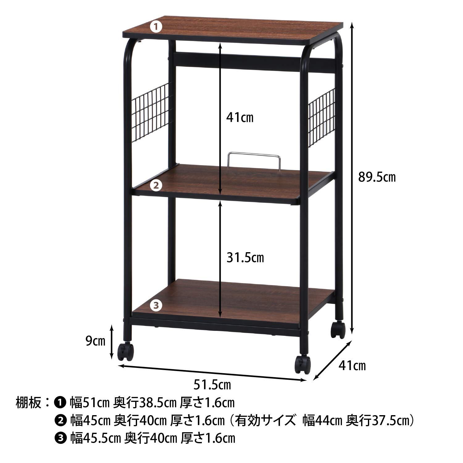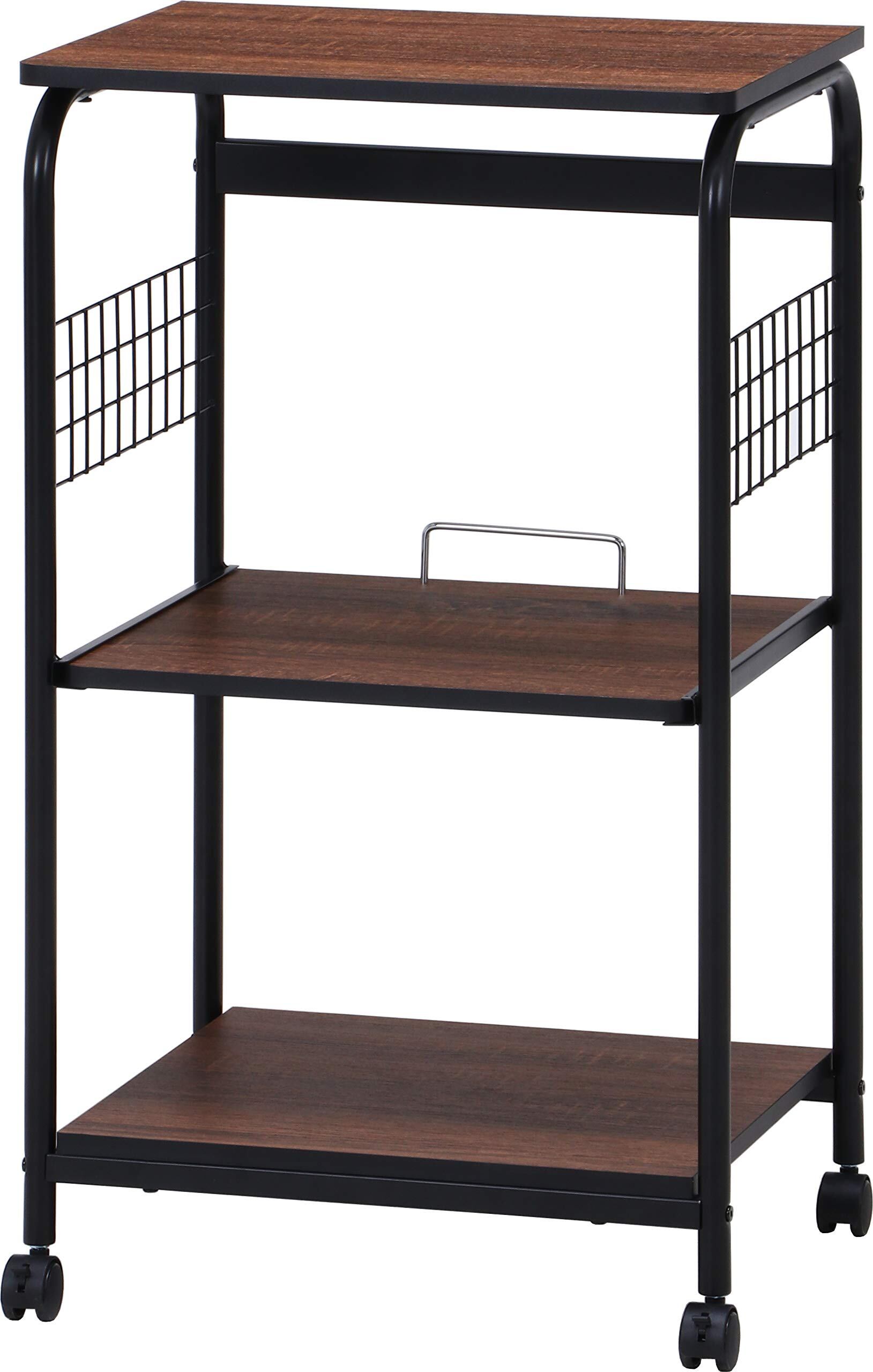 不二貿易 レンジ台 キッチンラック 幅51.5×41×高さ89.5cm ブラック ブラウン スライド棚 収納 レンジワゴン キャスター付き 15423