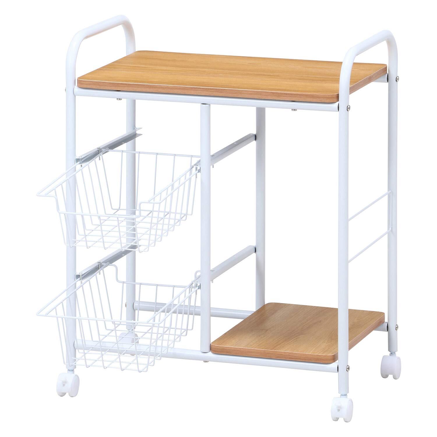 不二貿易 キッチンワゴン キッチンラック 幅56×奥行35.5×高さ69.5cm ホワイト ナチュラル 収納 スリム 引き出し キャスター付き 15424