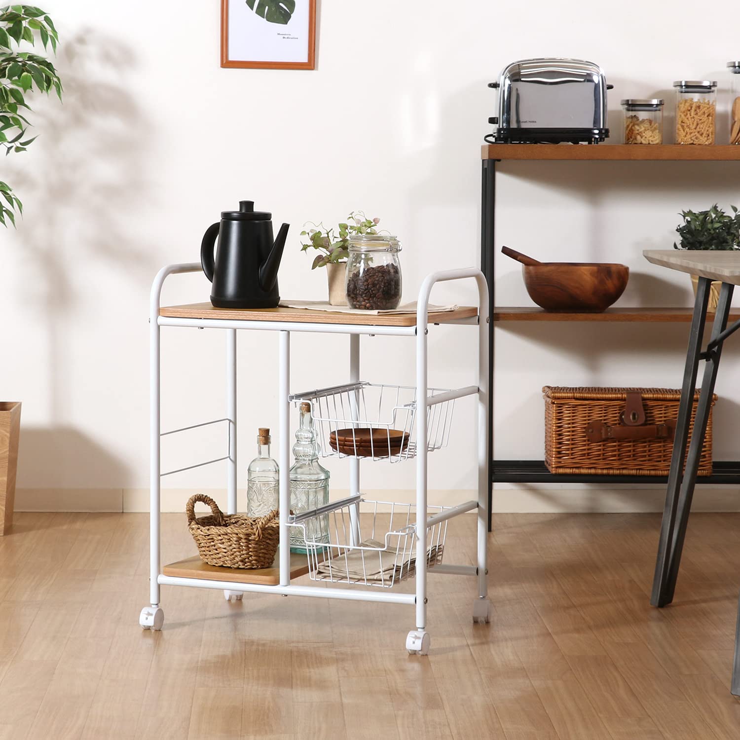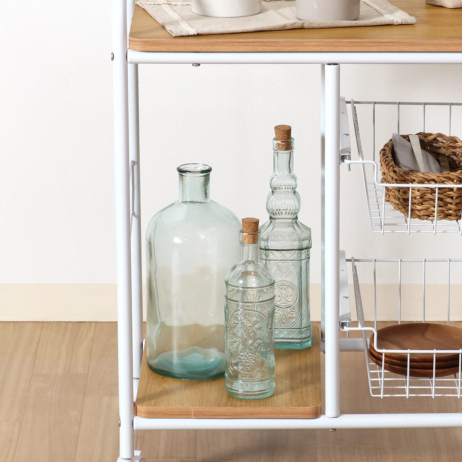 バスケット2杯付きで、小物や食品ストックもまとめて収納できます。