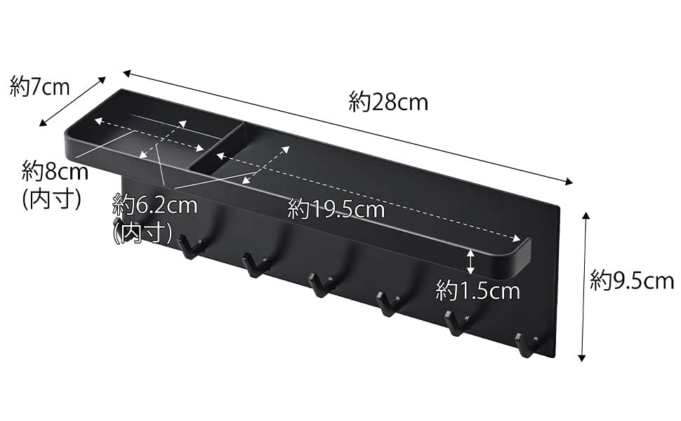内寸:トレー:約W8×D6.2×H1.5cm、バー:約W19.5×D6.2cm