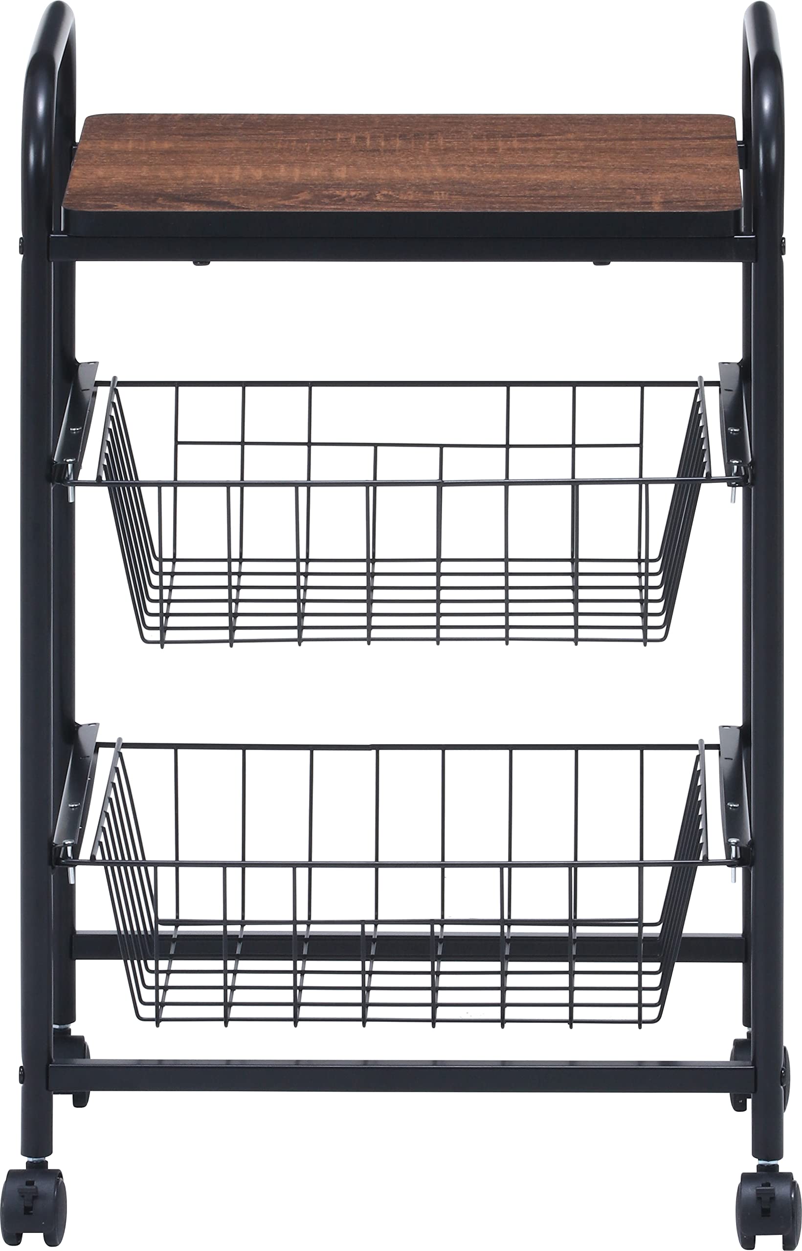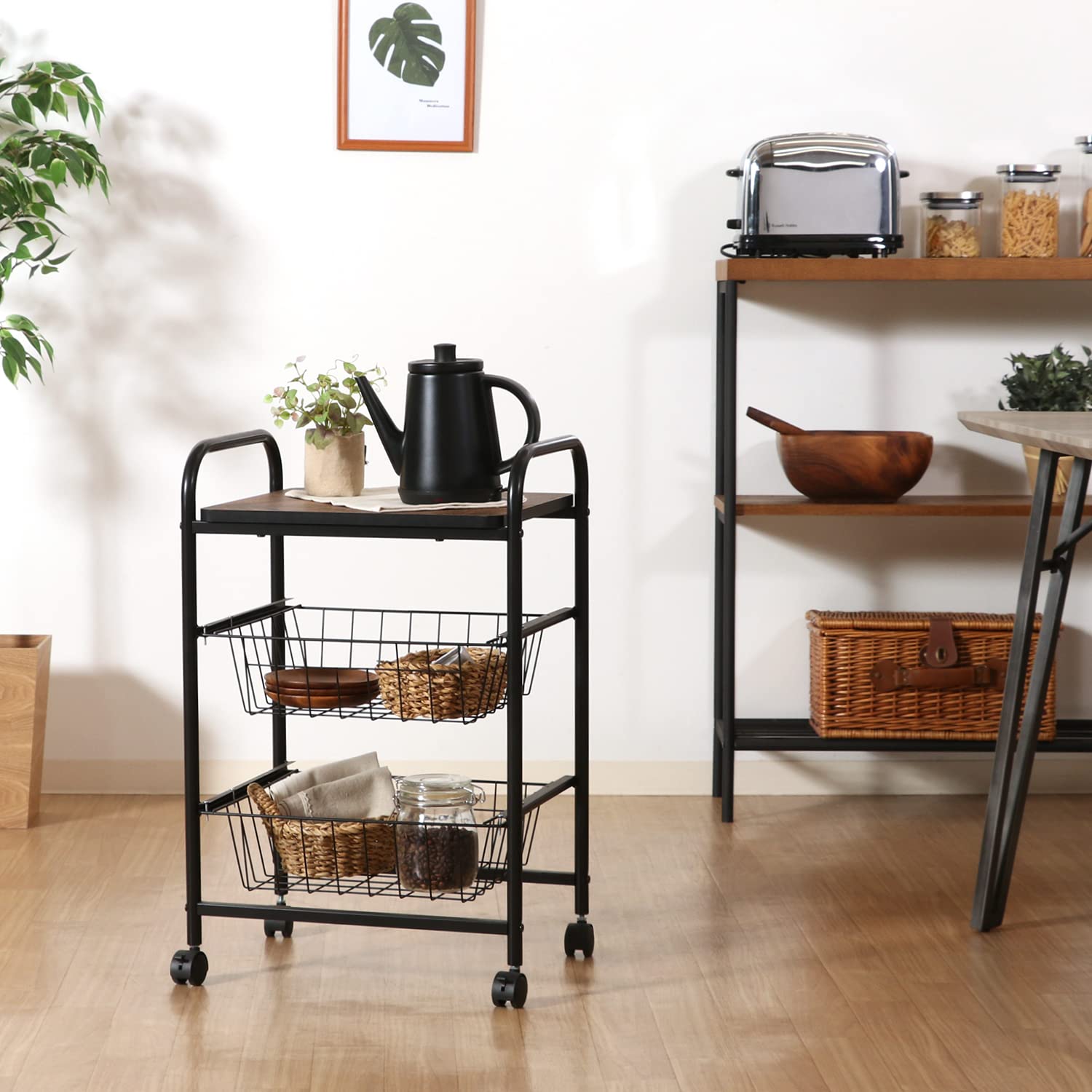 不二貿易 キッチンワゴン キッチンラック 幅45×奥行35.5×高さ69.5cm ブラック ブラウン 引き出し バスケット付き キャスター付き 15420