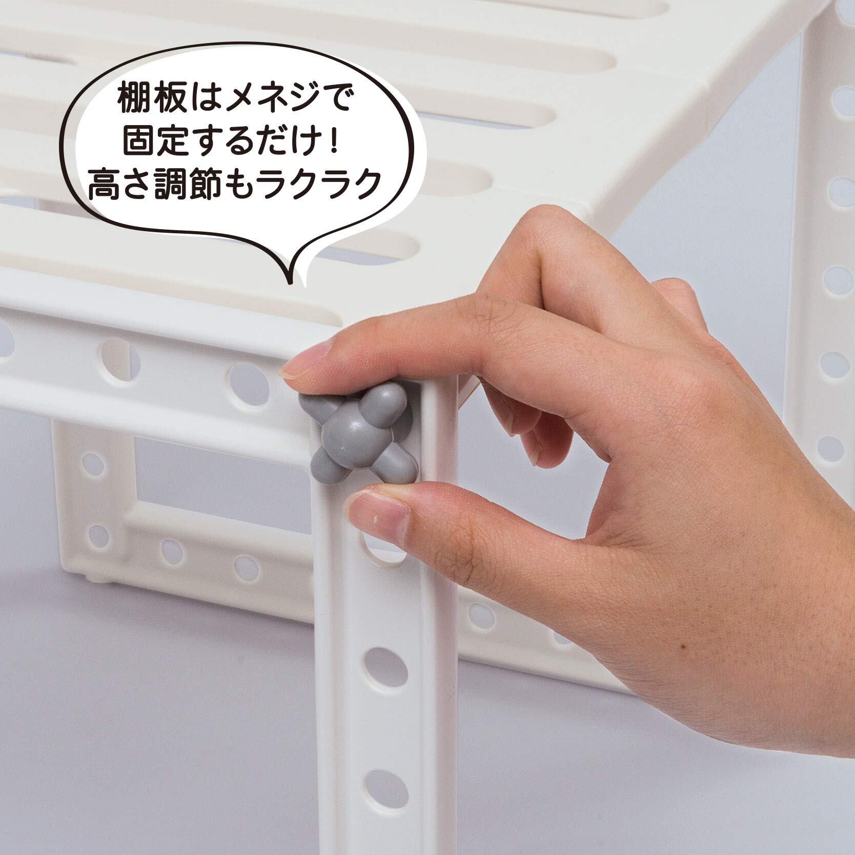 フレーム:スチロール樹脂、棚板・メネジ:ポリプロピレン、パイプ:ppコーティングスチールパイプ(樹脂部:ABS樹脂)