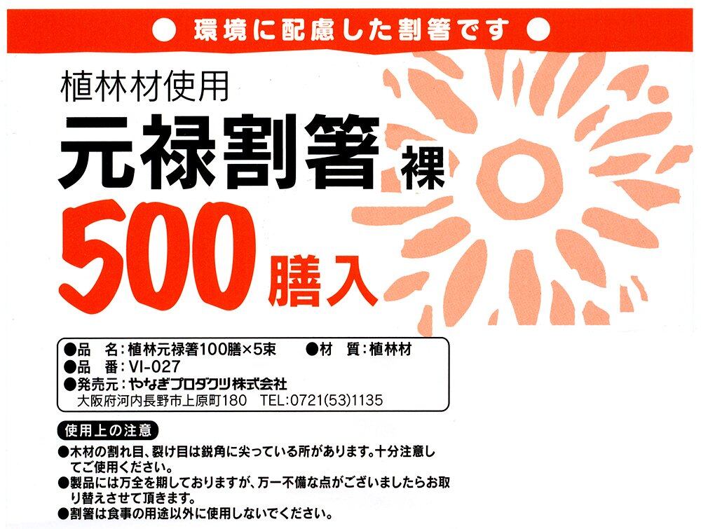 【新着商品】やなぎプロダクツ 割り箸 元禄 20cm 500膳入 業務用 大容量 VI-027