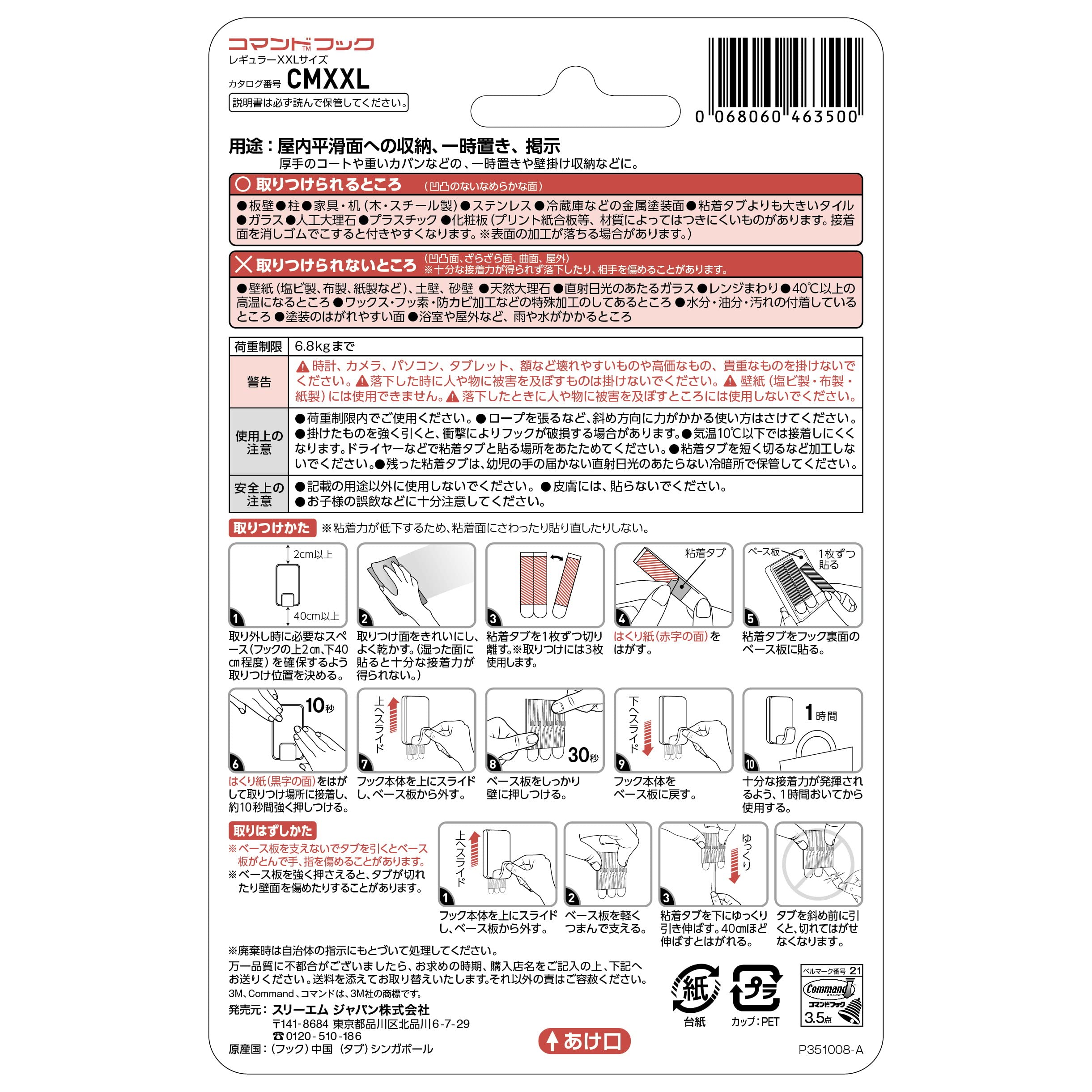 3M コマンド フック XXLサイズ 超強力 耐荷重6.8kg 1個 CMXXL