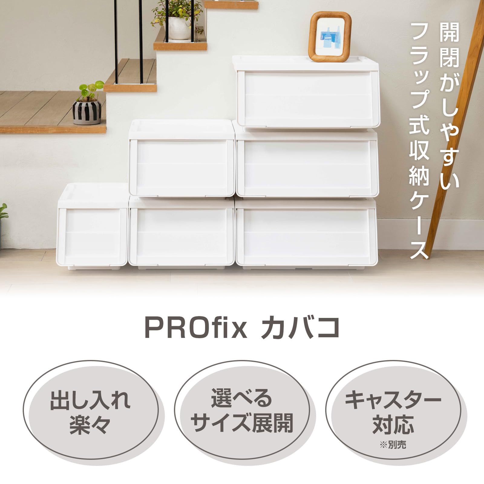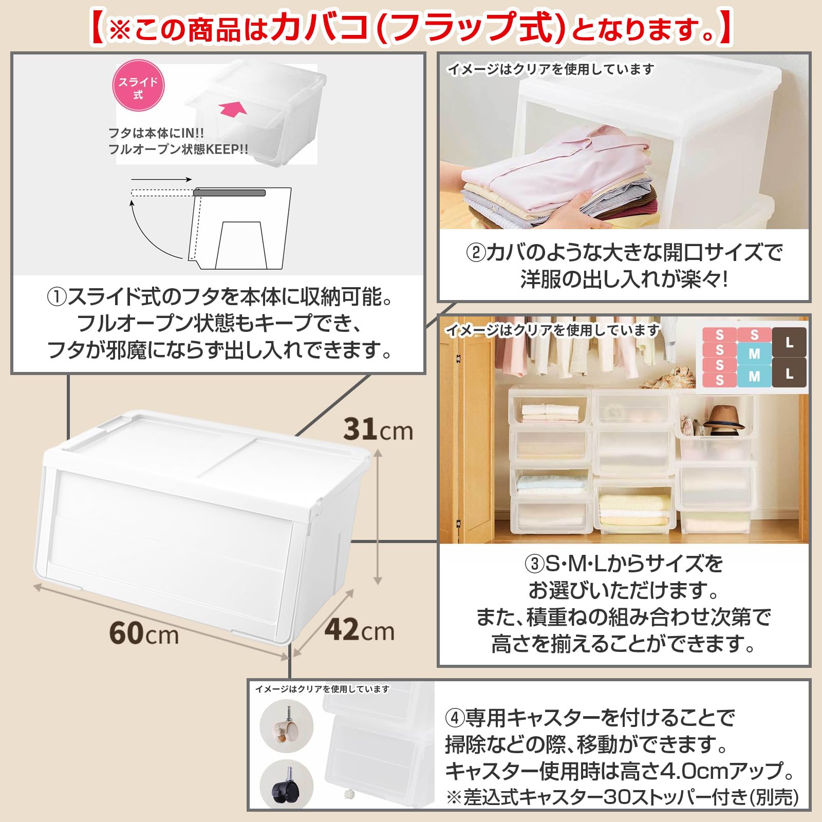 ●出し入れラクラク!開口サイズが大きいフラップ式の収納ケース