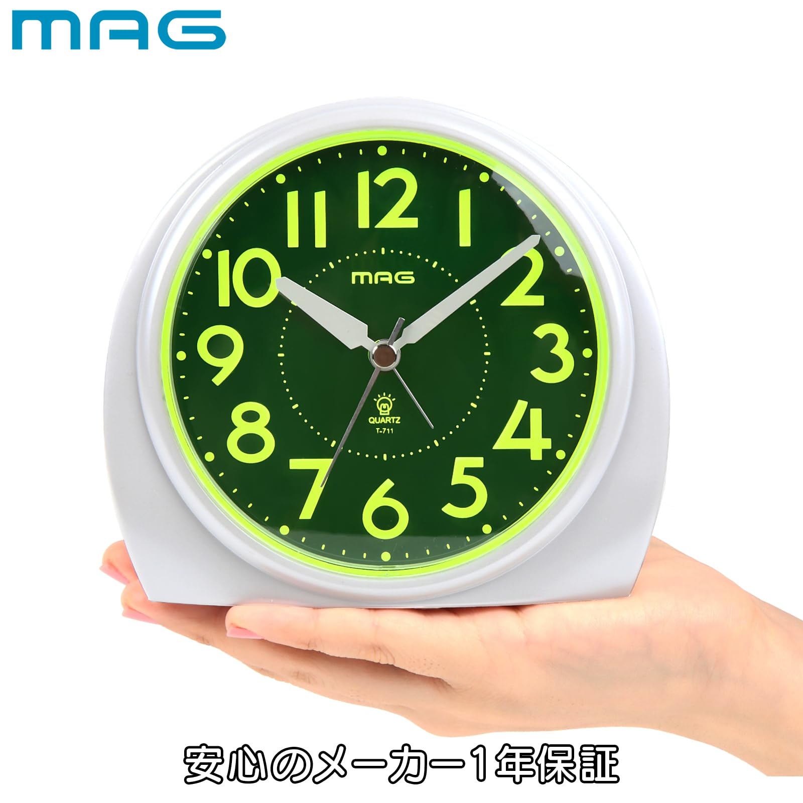 MAG(マグ) 目覚まし時計 置き時計 アナログ 見やすい 静音 連続秒針 電子音 アラーム スヌーズ ライト ホワイト あけぼの T-711 WH-Z ノア精密