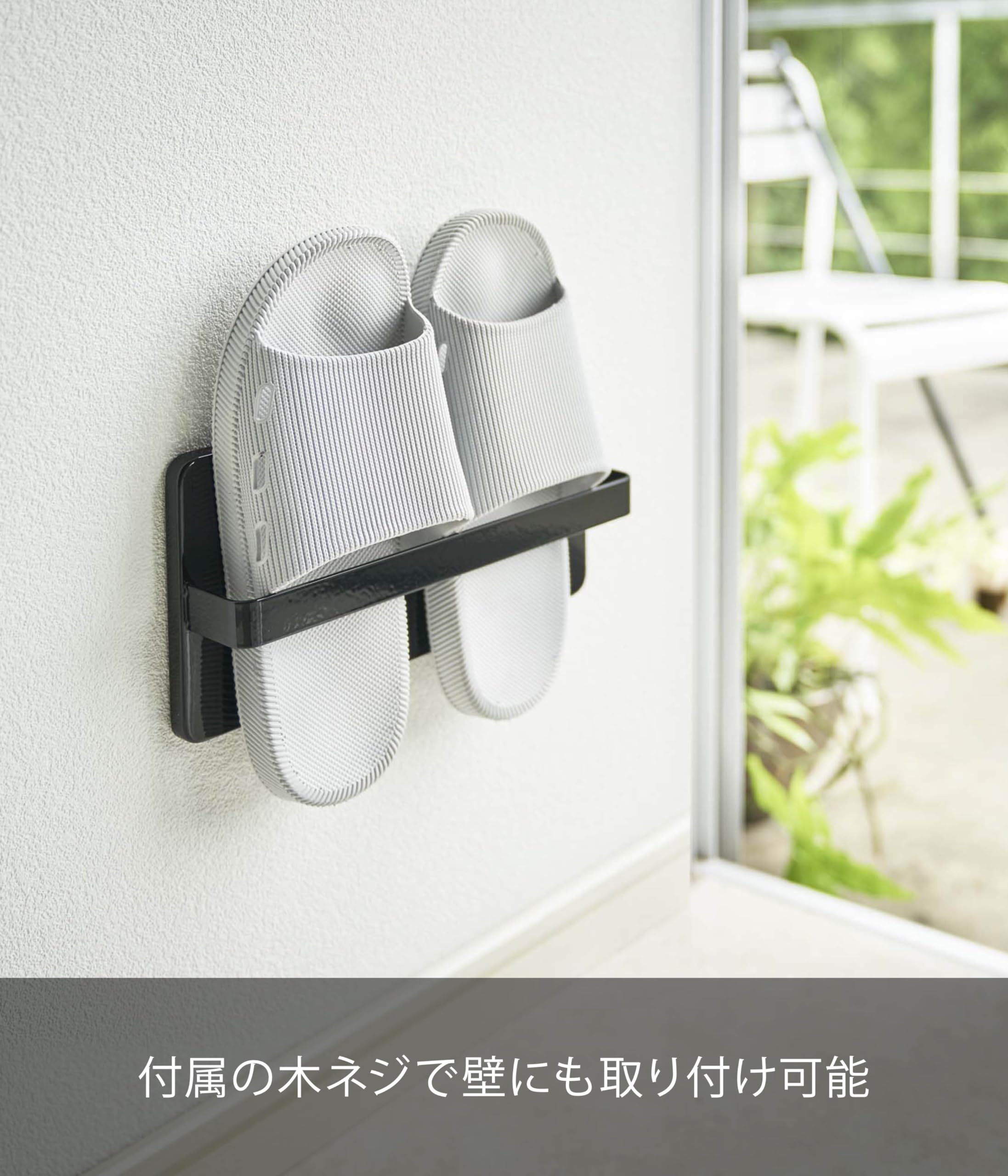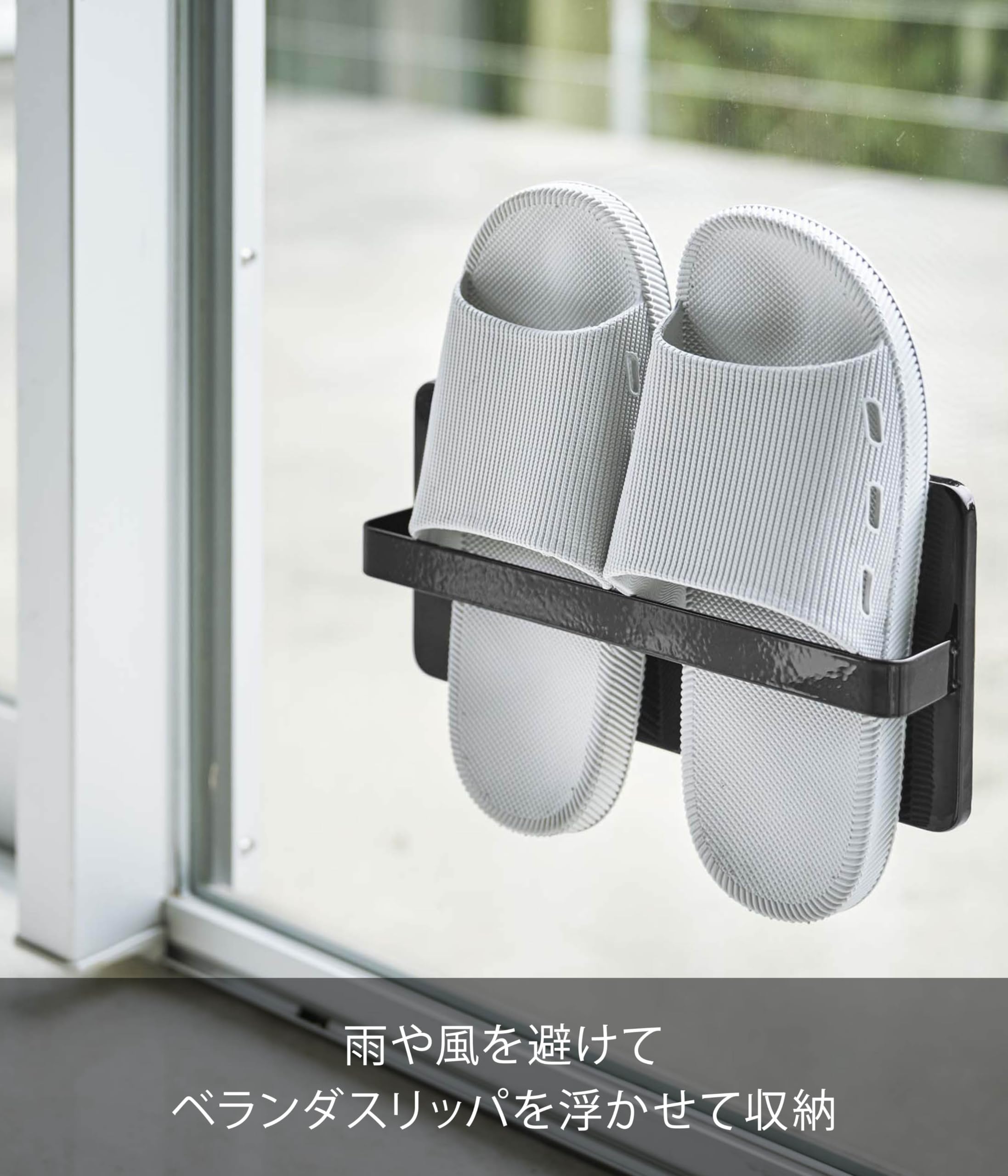 【大人気商品】山崎実業(Yamazaki) ツーウェイベランダスリッパラック ブラック 約W25XD5XH12.5cm タワー 吸盤取り付け 木ネジ付きで壁面収納も可 4964