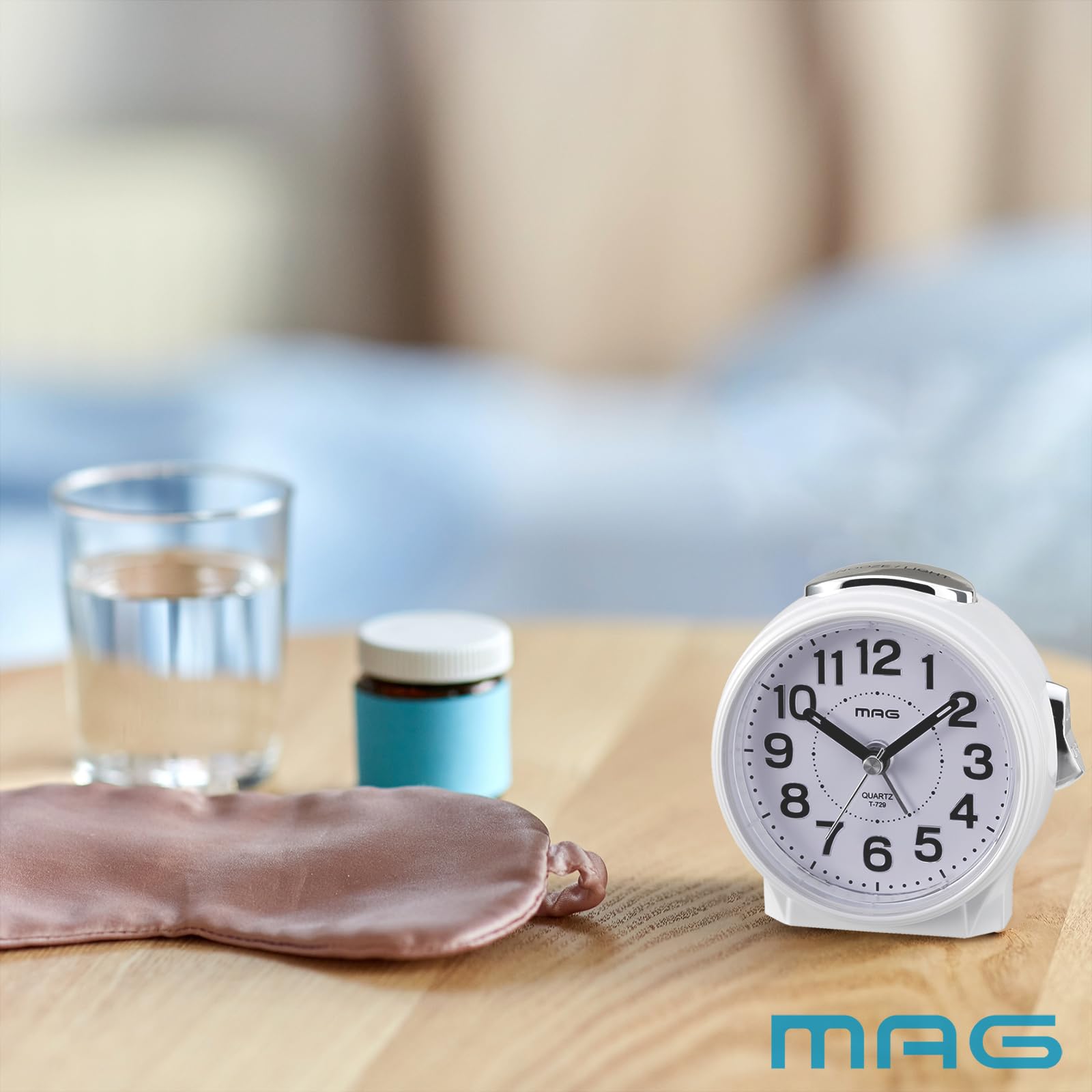 MAG(マグ) 目覚まし時計 置き時計 アナログ 静音 連続秒針 電子音 アラーム スヌーズ ライト ホワイト ブルーブライト T-729 WH-Z ノア精密
