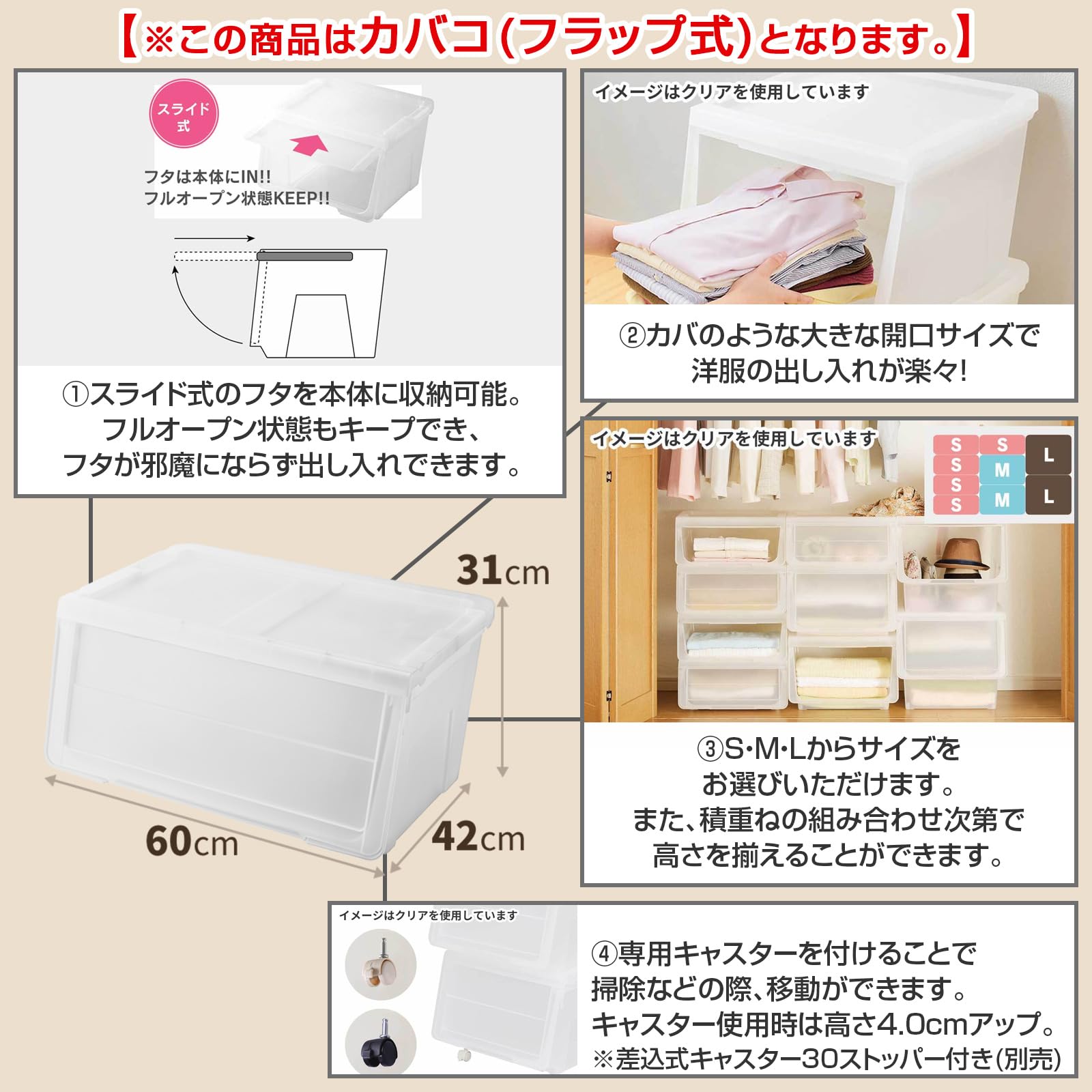 天馬(Tenma) 収納物の出し入れがしやすいフラップ式収納ボックス カバコ ワイドM 完成品 場所を選ばないデザインの収納ケース フラップ扉 衣装ケース 収納しているものが把握できる半透明のクリアカラー プラスチック 【組立不要】 【色 クリア】 【サイズ ワイドM】 【幅60×奥行42×高さ31cm】