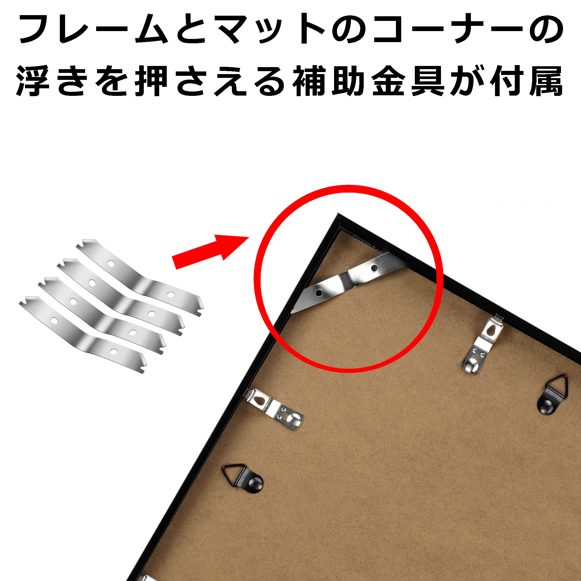 コーナーおさえ補助金具(4個入)が付属しています。フレームとマットのコーナーの浮きが気になる方は、同封の説明書をよく読みコーナー補助金具をお使いください。