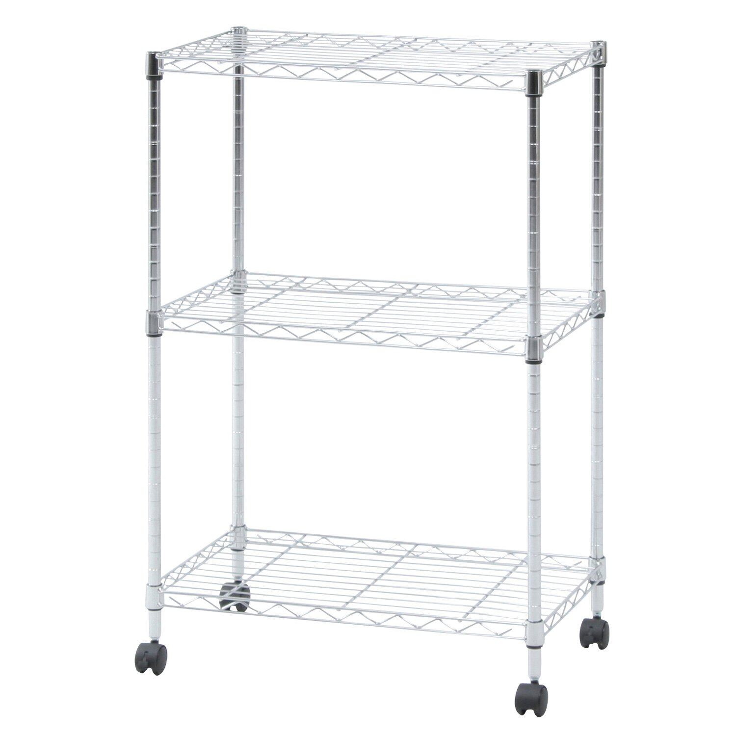 不二貿易 メタルラック 3段 幅60cm クロムメッキ キャスター付き 91785