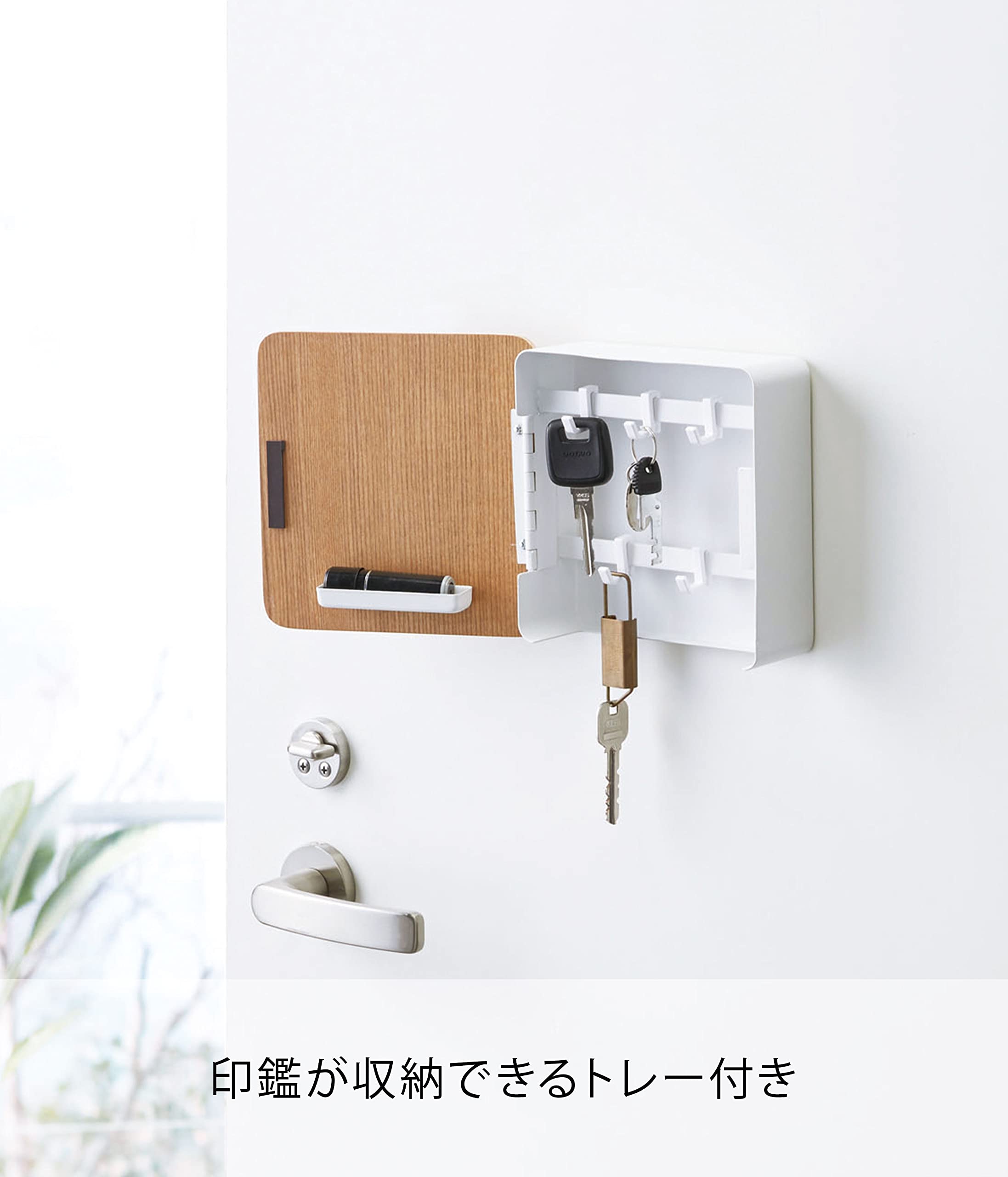 インテリアに合う木目の扉付きで鍵が隠せる。