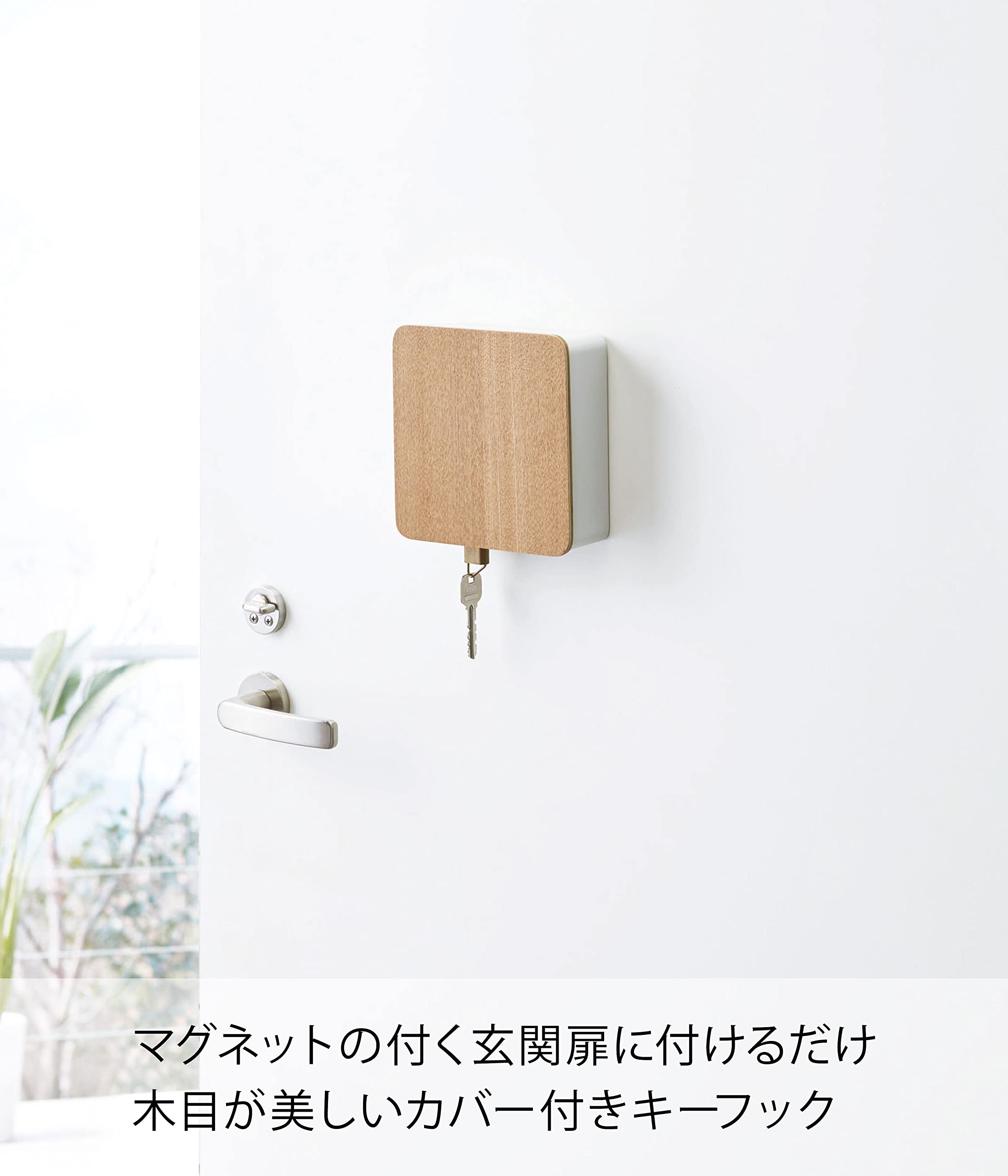 【新装セール】山崎実業(Yamazaki) マグネット キーフック 2段 ナチュラル チュラル 約W15.8XD15.7XH15.8cm リン 2段式 鍵収納 移動できるフック付き 4802 | ももくま屋さん
