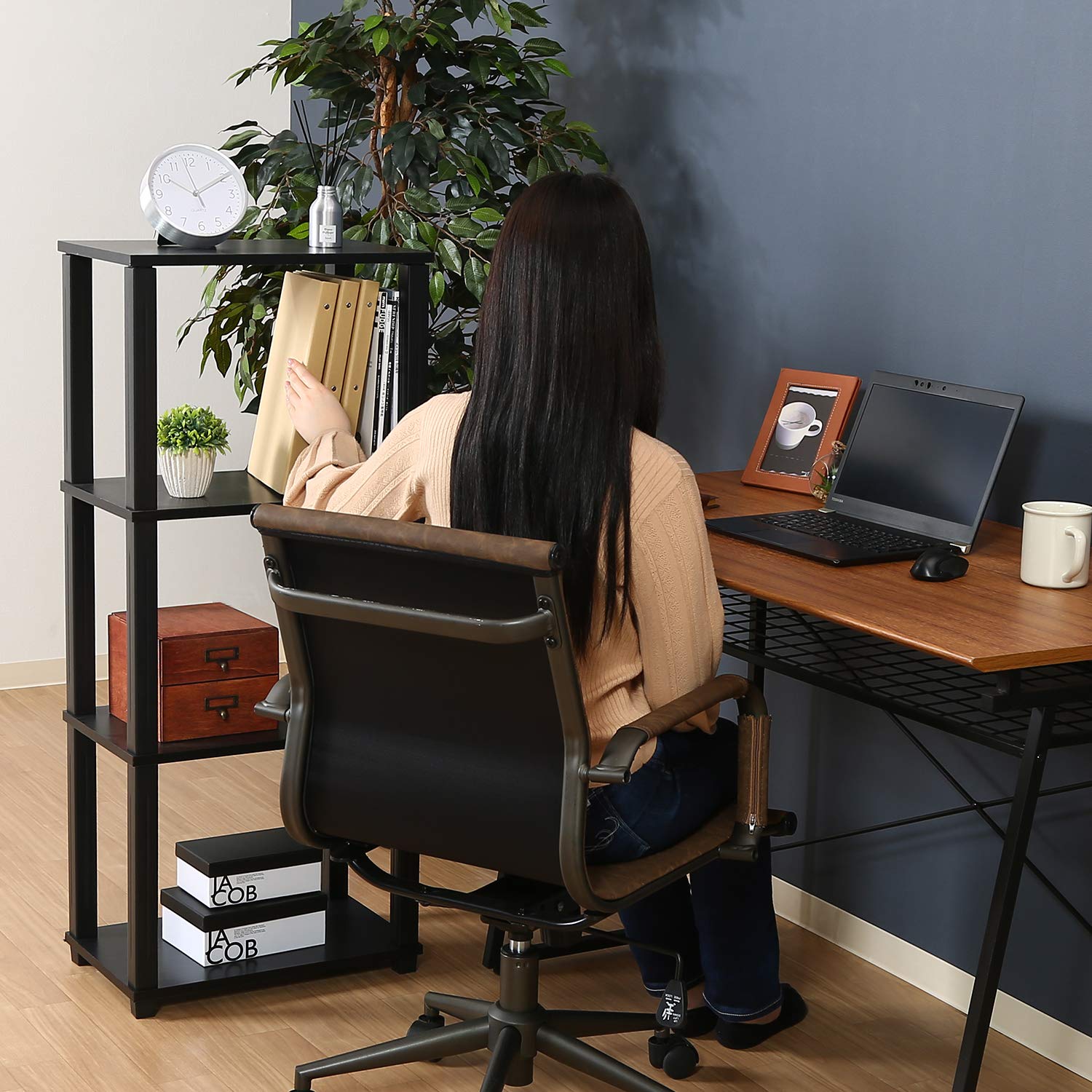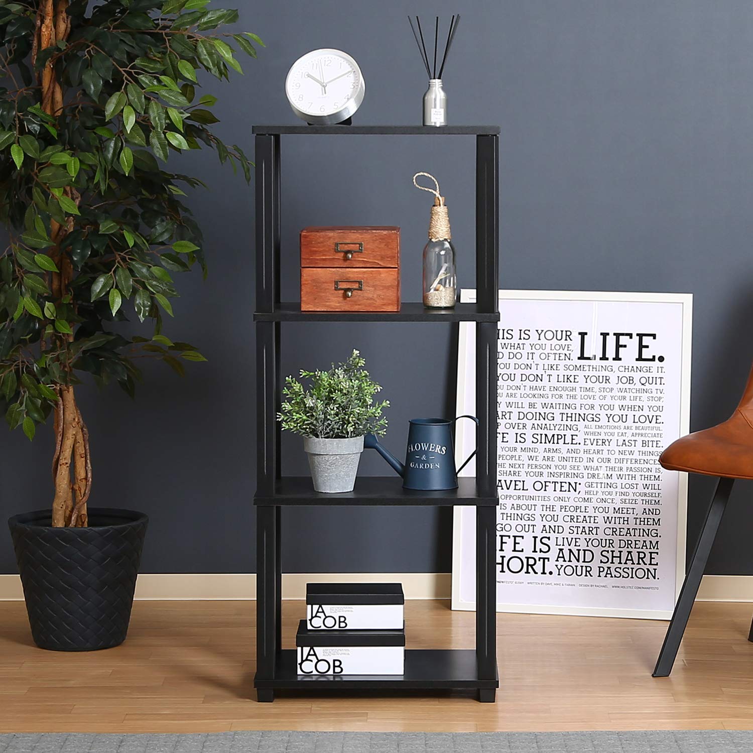 不二貿易 オープンラック シェルフ 4段 幅47×奥行29.5×高さ111.2cm ブラウン ブラック 軽量 工具不要 組立商品 フィット 99775