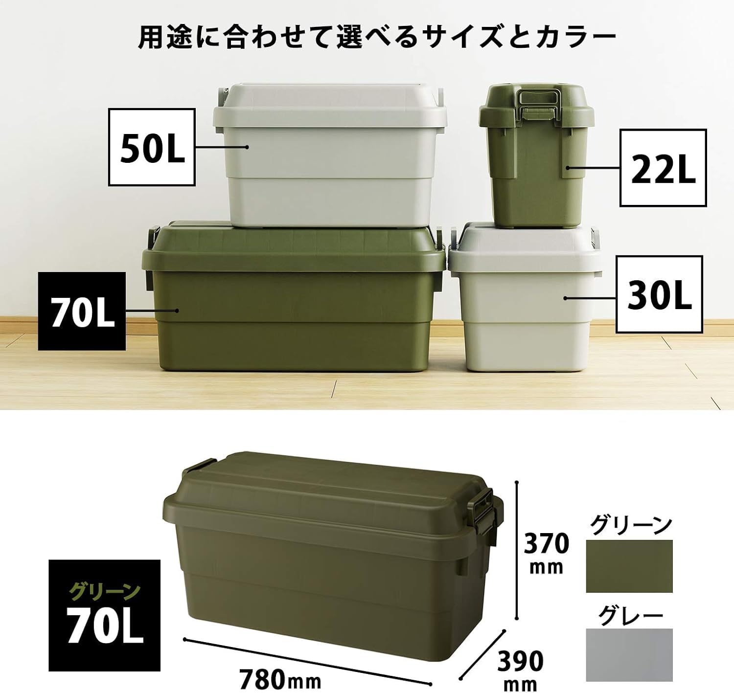 リス(RISU) 収納ボックス トランクカーゴ 70L グリーン 日本製 TC-70 コンテナ ボックス 屋外収納 キャンプ 防水 GHON072