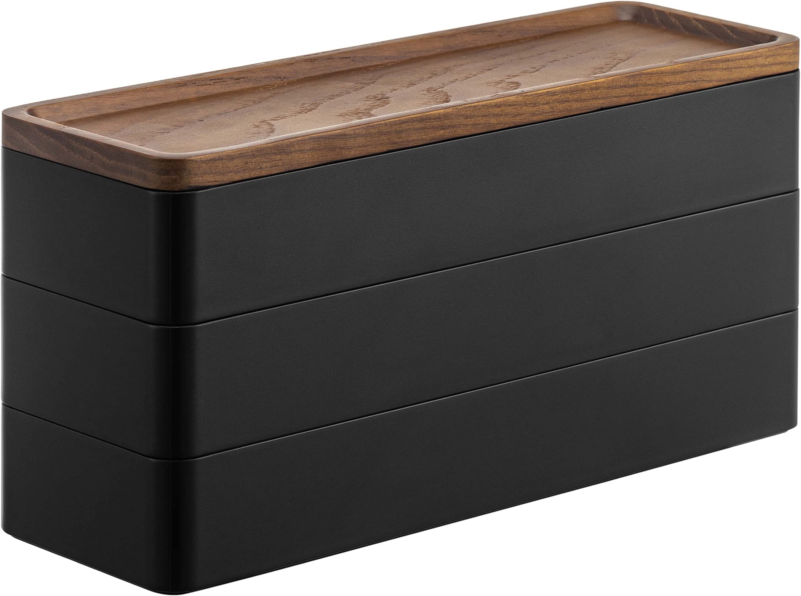 【特価商品】山崎実業(Yamazaki) トレー付き スリム アクセサリーケース 3段 ブラウン 約W24XD8XH11.5cm リン RIN 蓋がトレーになる アクセサリー収納 5810