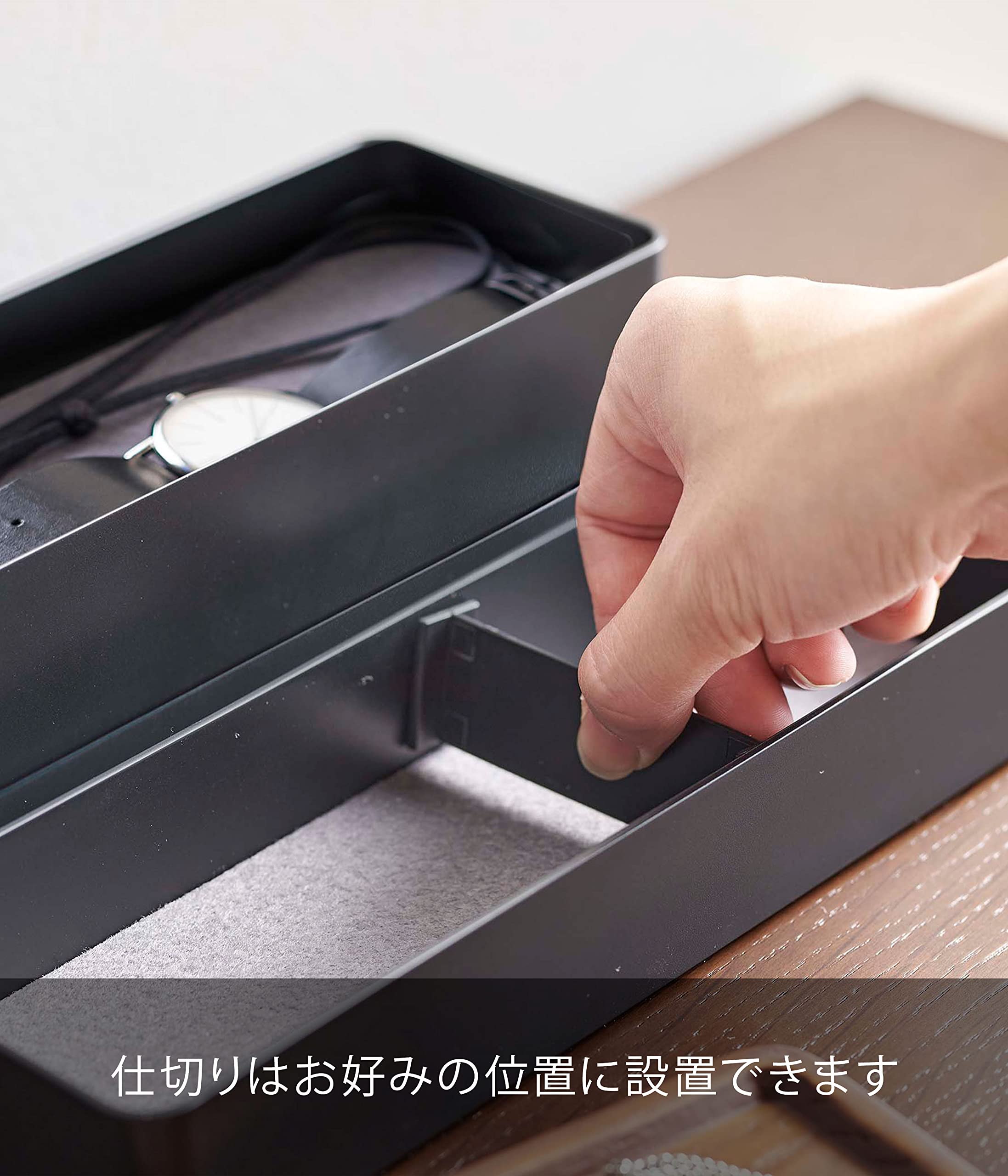 お好きな場所に取り付け可能な便利な仕切り付き。