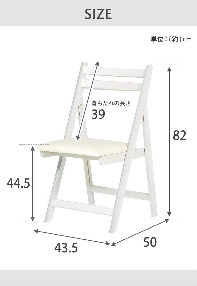 萩原 折りたたみ 椅子 コンパクト チェア ダイニング リビング 屋内【背もたれゆったり39cm】完成品 在宅ワーク 仕事 勉強 省スペース ホワイト 幅43.5×奥行50×高さ82 座面高44.5 MC-7681WS