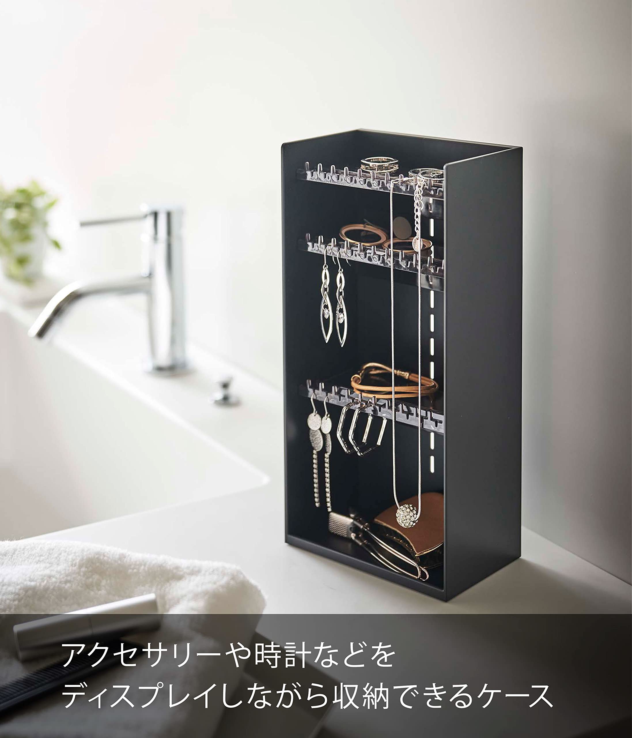 山崎実業(Yamazaki) アクセサリー収納 ケース 4段 ブラック 約W12×D7.7×H25㎝ タワー 大容量 小物収納 ジュエリーケース 5600