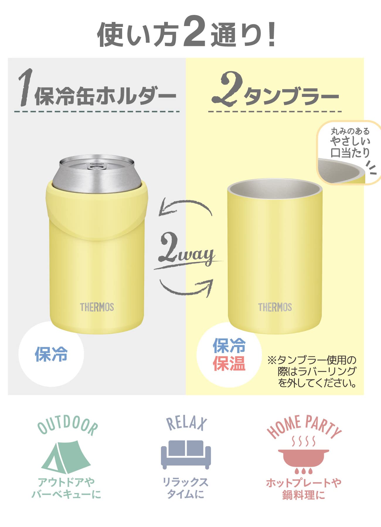 【新着商品】サーモス 保冷缶ホルダー 350ml缶用 2wayタイプ イエロー JDU-350 Y