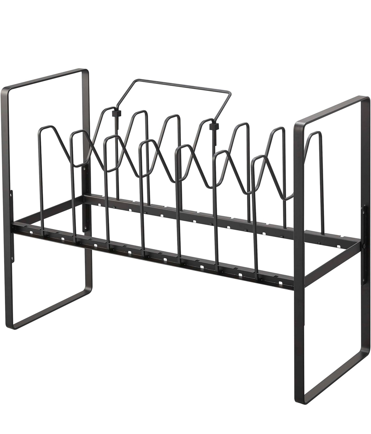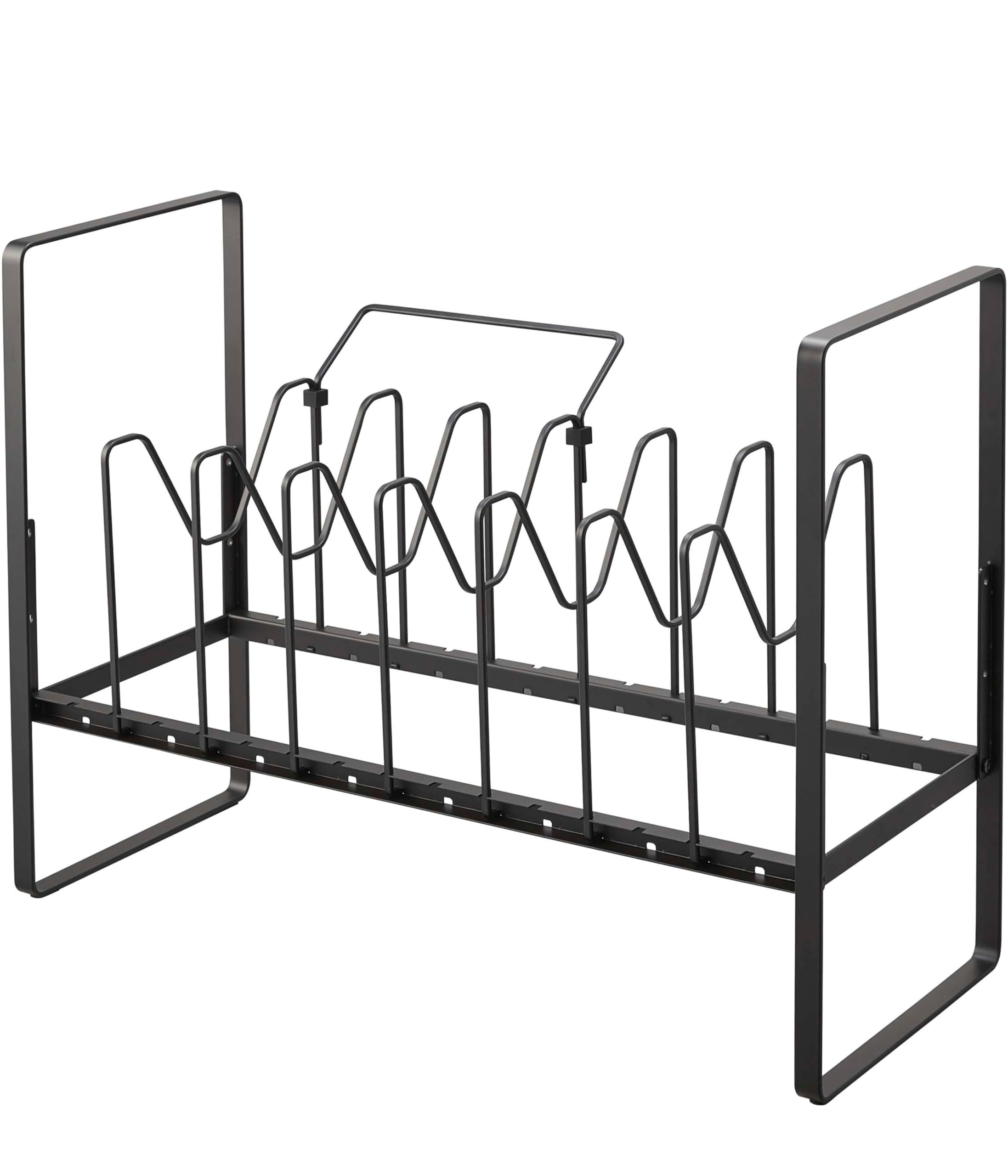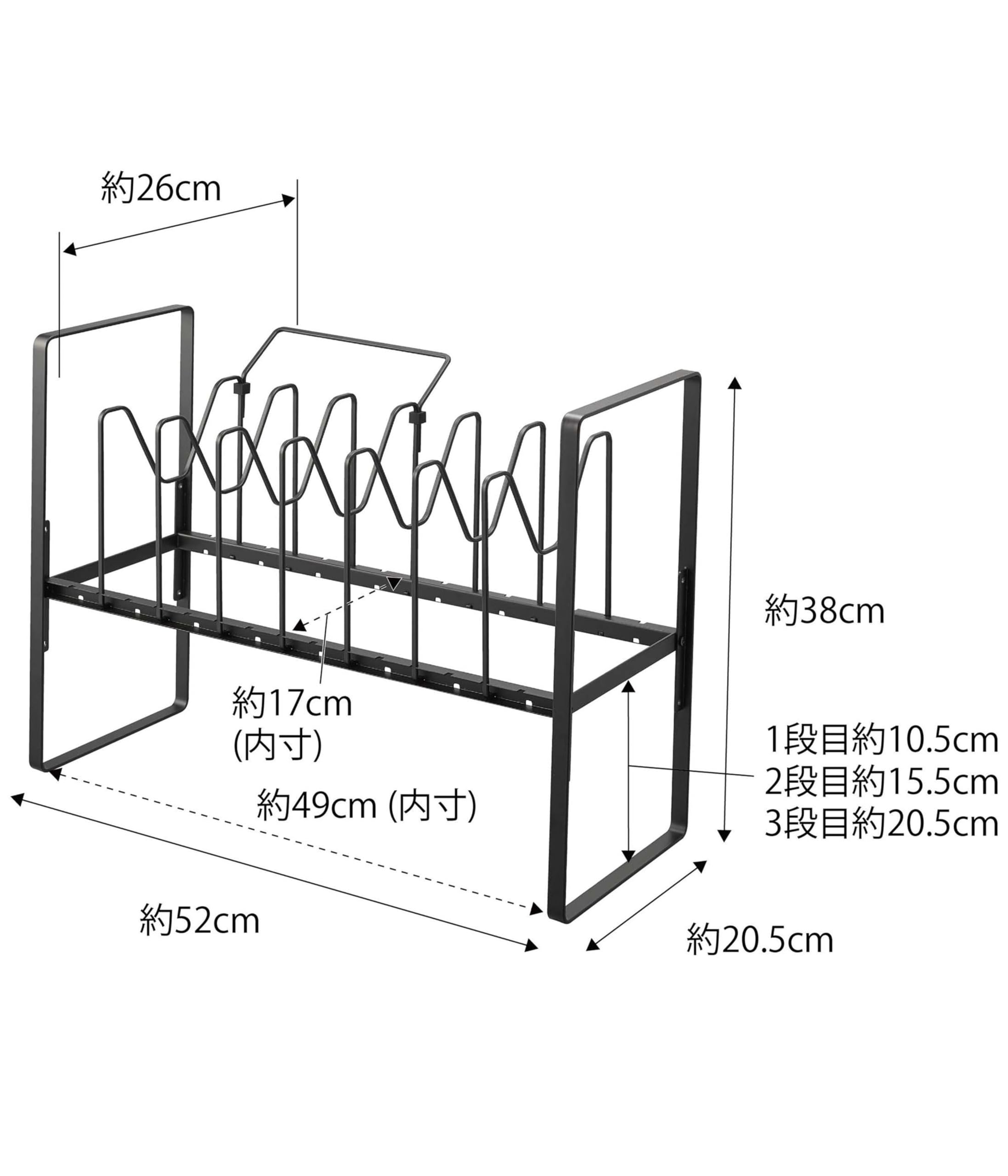 フライパンや鍋蓋を立てて収納でき、高さ調節できるから下のスペースも有効活用!
