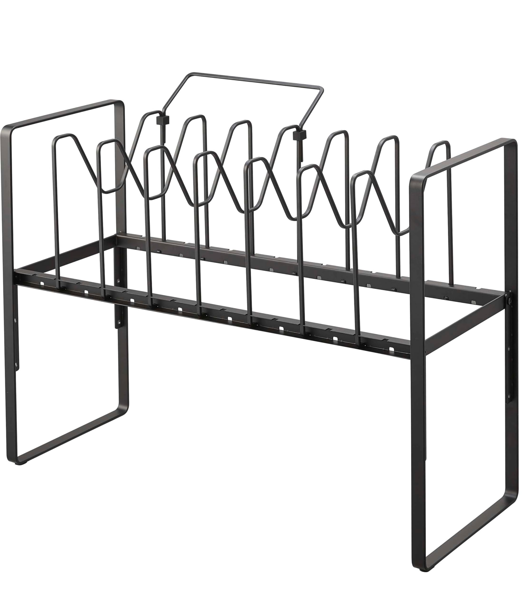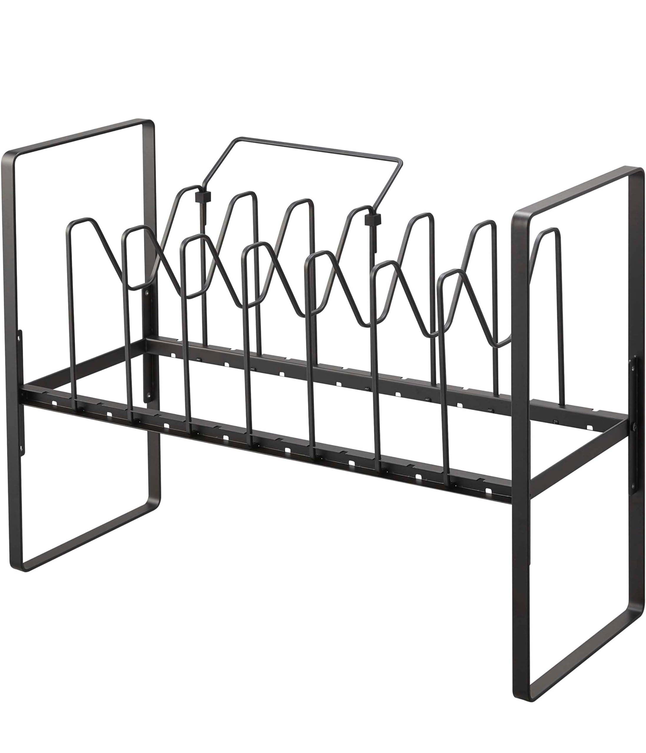 山崎実業(Yamazaki) シンク下 高さ調整 鍋蓋 & フライパン収納ラック 2段 ブラック 約W52×D26×H38~41cm(持ち手置き含む) タワー tower フライパンラック 7本仕切りパーツ付き 手持ち置き付き 5594