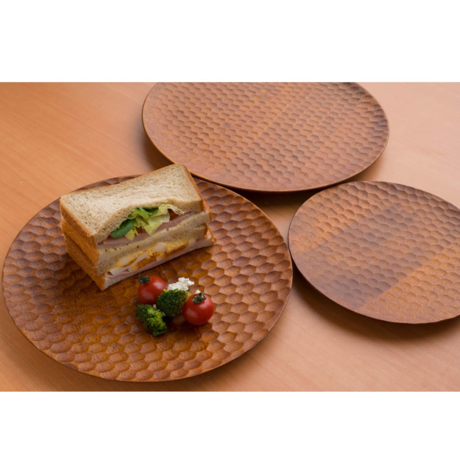 スワンソン商事 プレート 丸 L 木製 DDプレート ライトブラウン 約直径30×高さ2cm 業務用 サービング ボード 蜂の巣彫り TH801-30