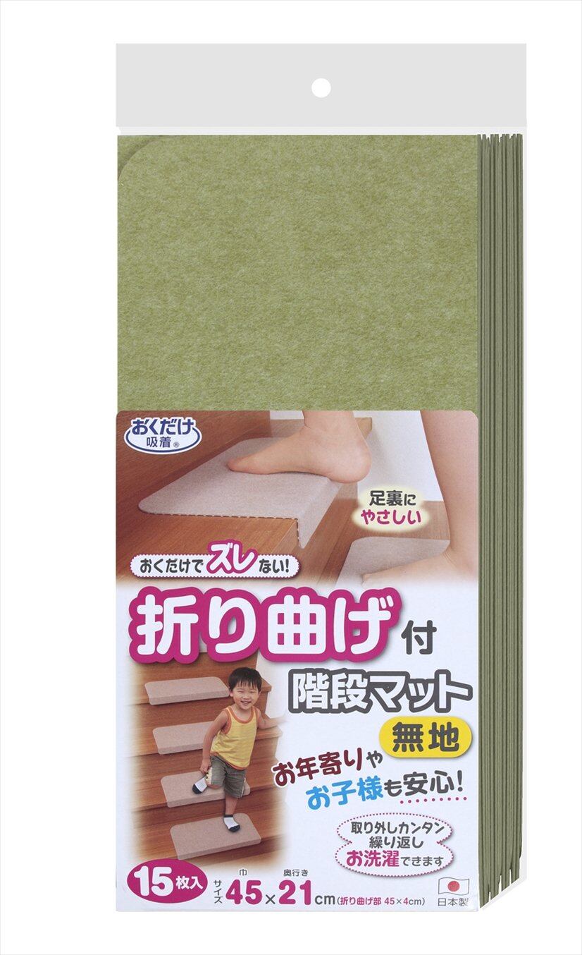 【人気商品】サンコー おくだけ吸着 獣医師推奨 折り曲げ付 階段マット 15枚入 グリーン ペット用 犬 猫 すべり止め カーペット 【日本製 撥水 消臭 洗える ハサミでカット可】 KD-55 | ももくま屋さん