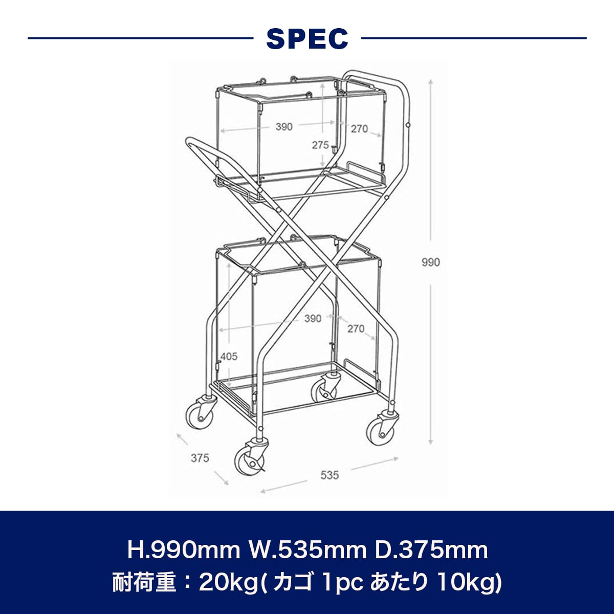 耐荷重:合計20kg(カゴ1つあたり10kg)