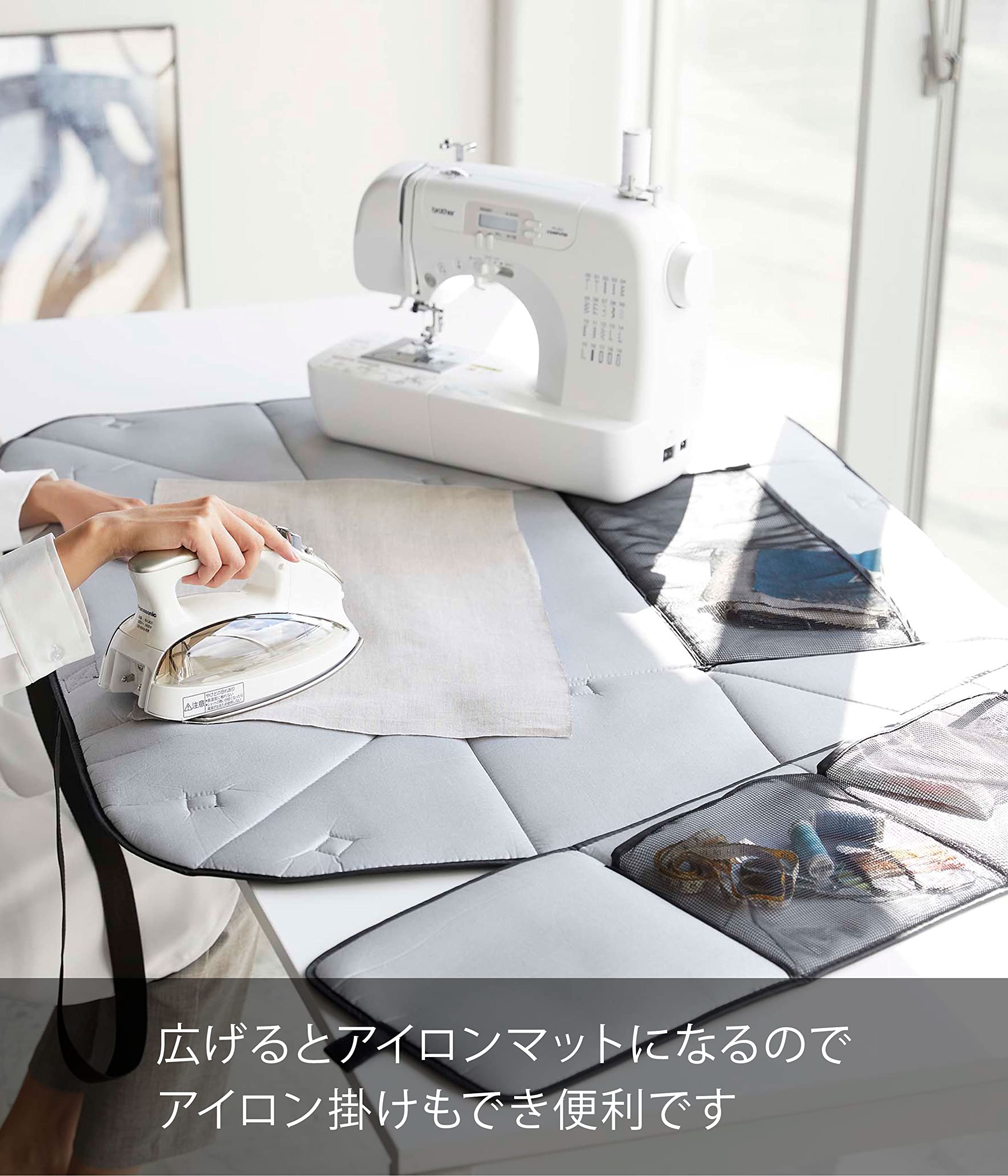 広げるとアイロンマットになるので、ミシン掛け必須のアイロン掛けが同時にできます。