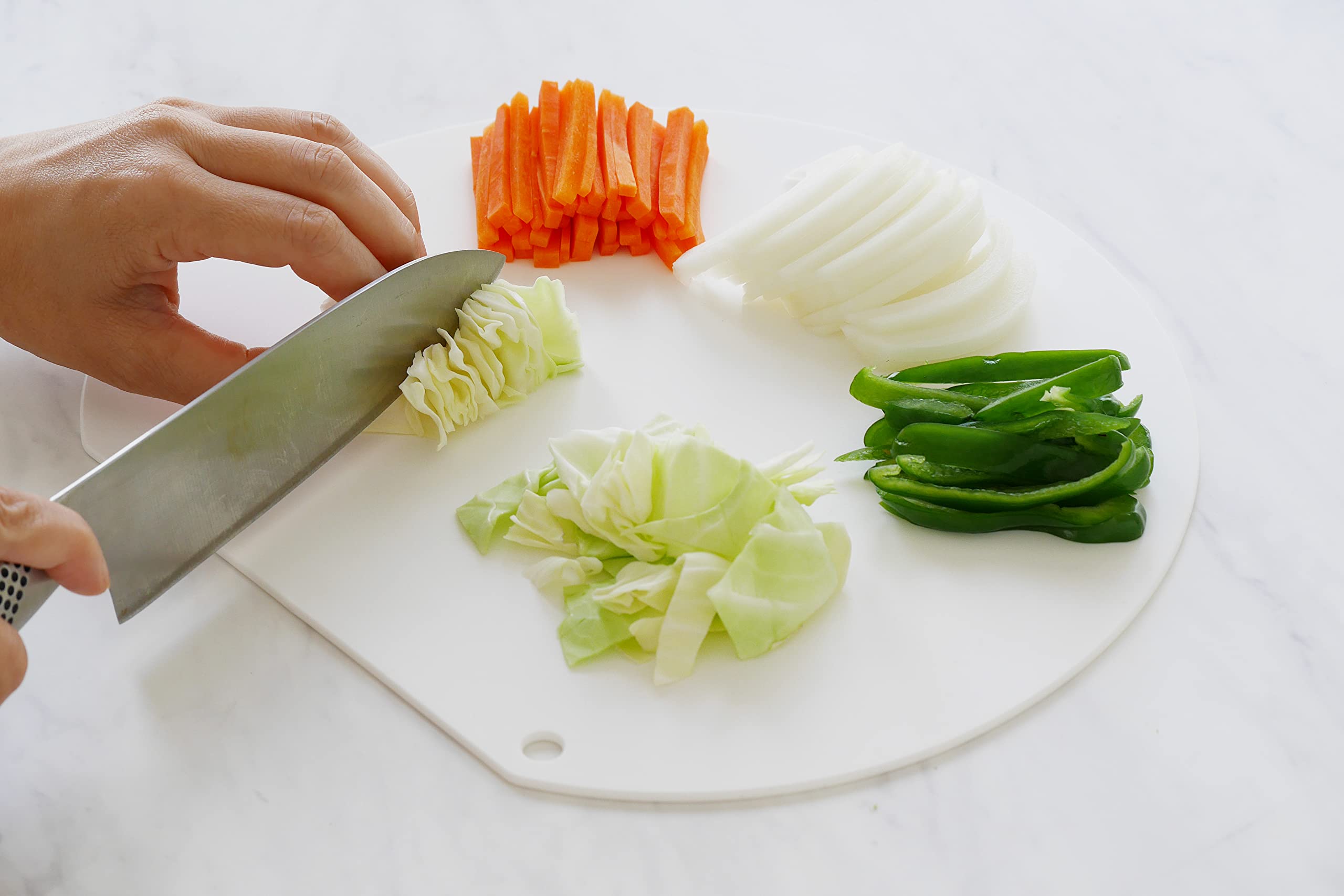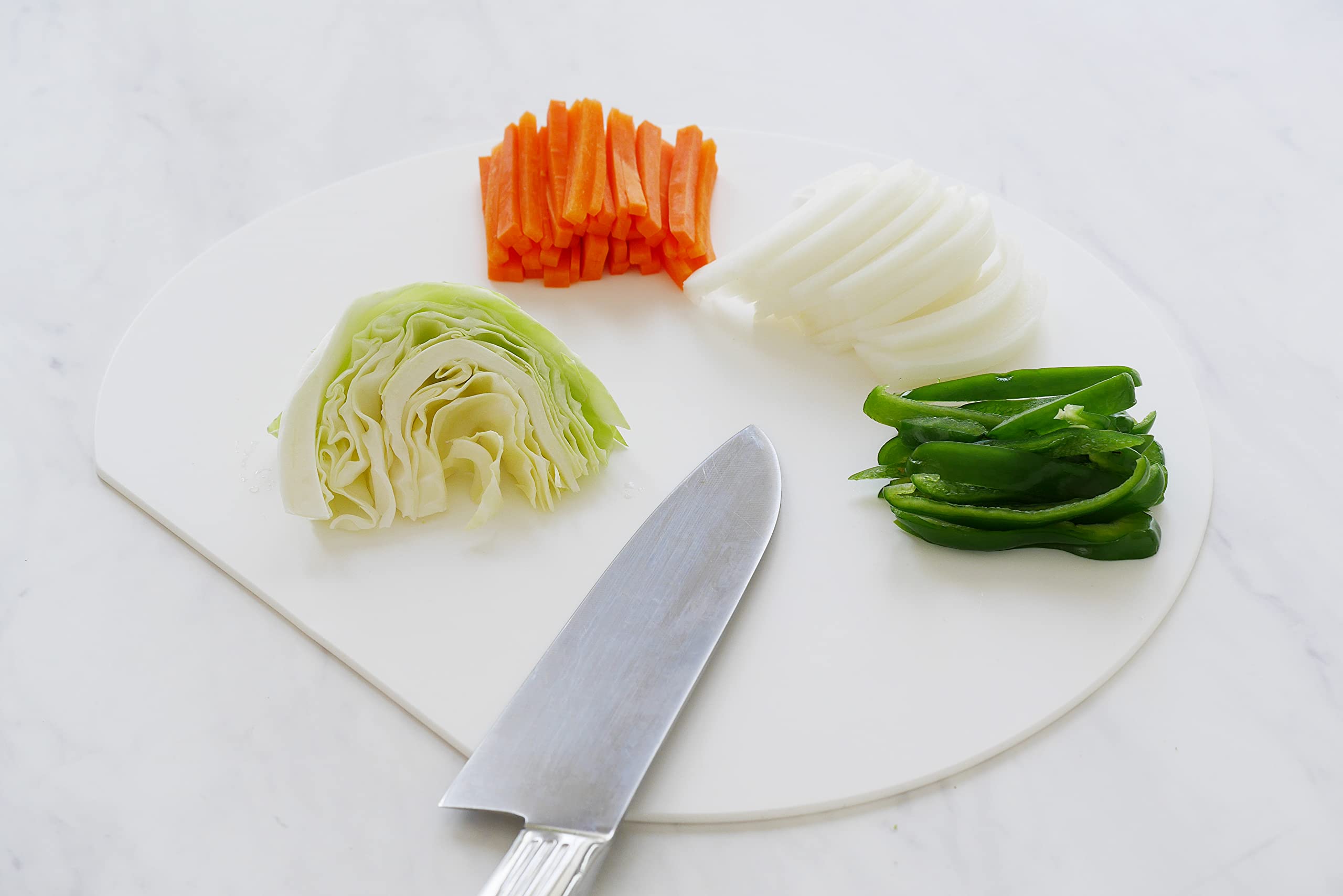手前で切ったものを奥に並べていけるD型タイプのまな板です。