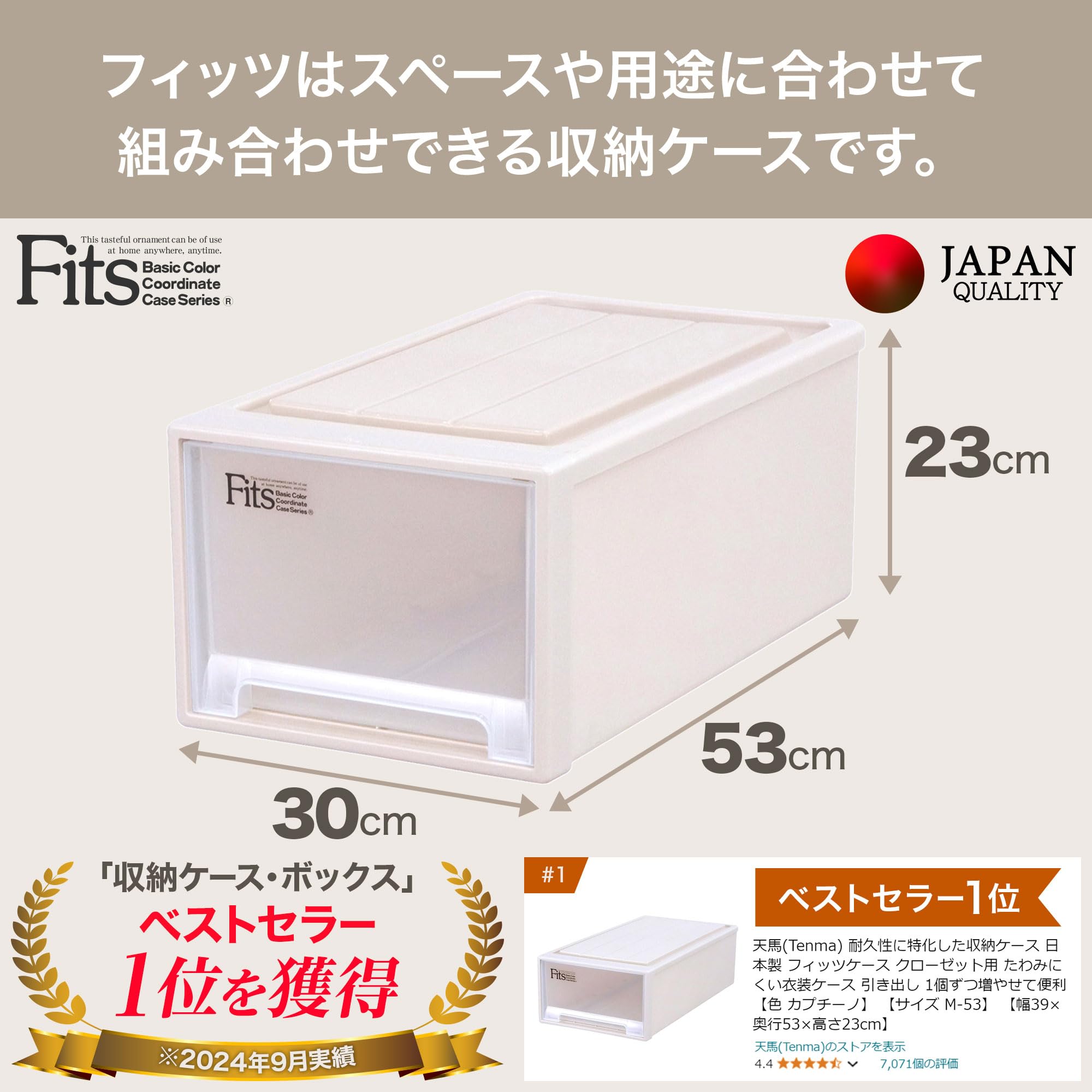 天馬 収納ボックス フィッツケース クローゼット 幅30×奥行53×高さ23cm 収納ケース たわみにくい 衣装ケース 日本製 【色 カプチーノ】 【サイズ M-30】