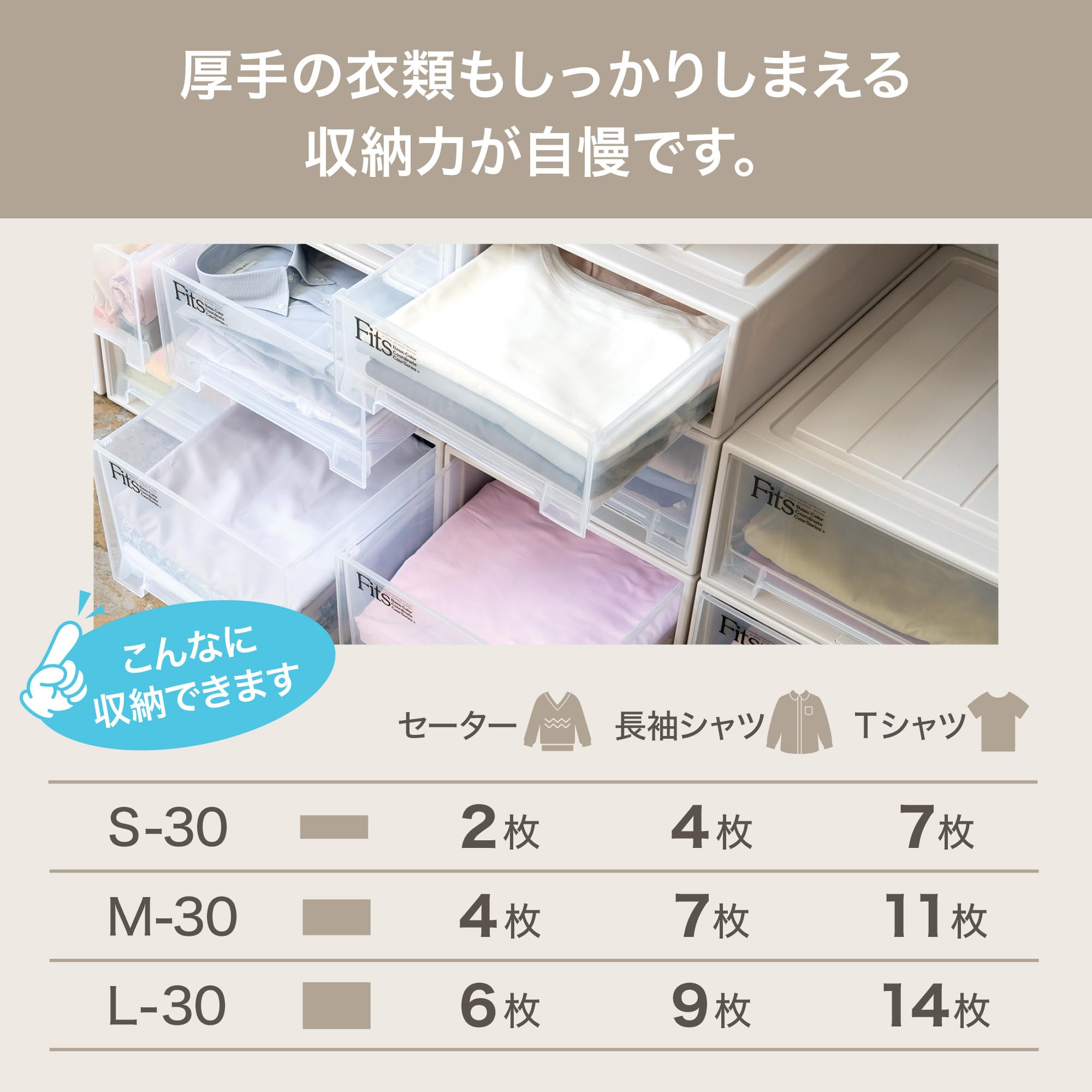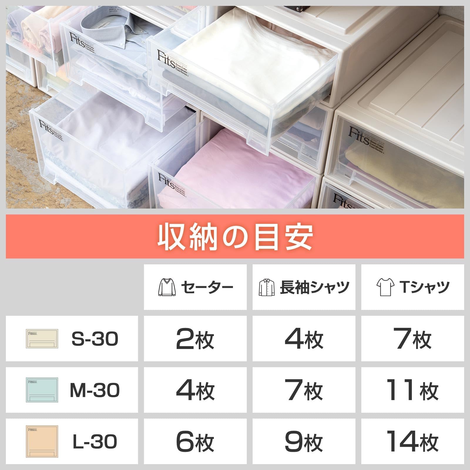 収納の目安(約):Yシャツが7枚