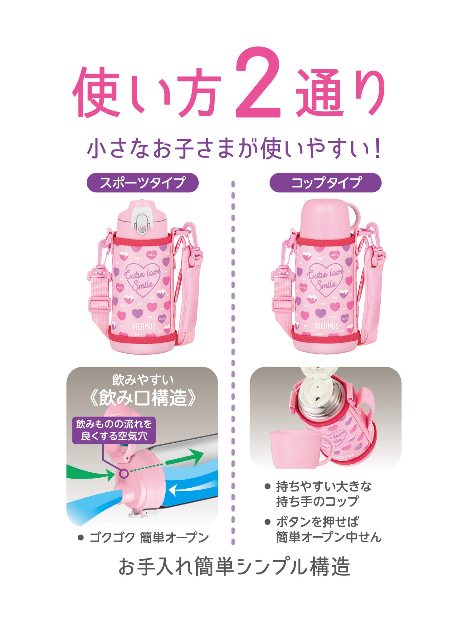 ●スポーツタイプとコップタイプの2ウェイボトル